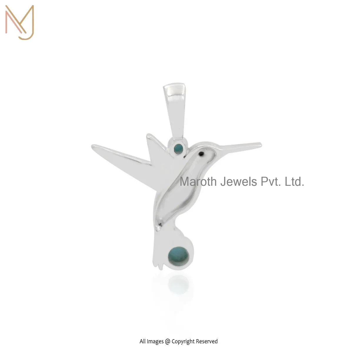Wholesale 925 Silver Natural Silver Plated Black Spinel & Turquoise Swallow Bird Pandant