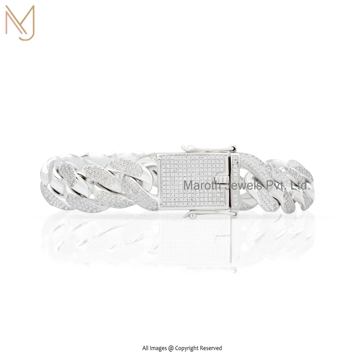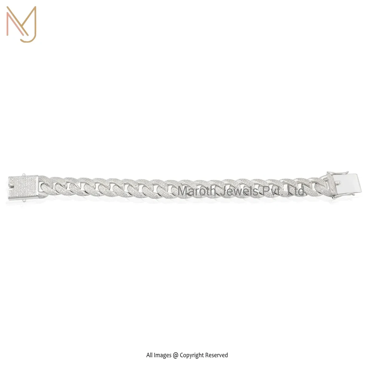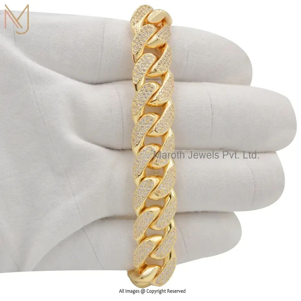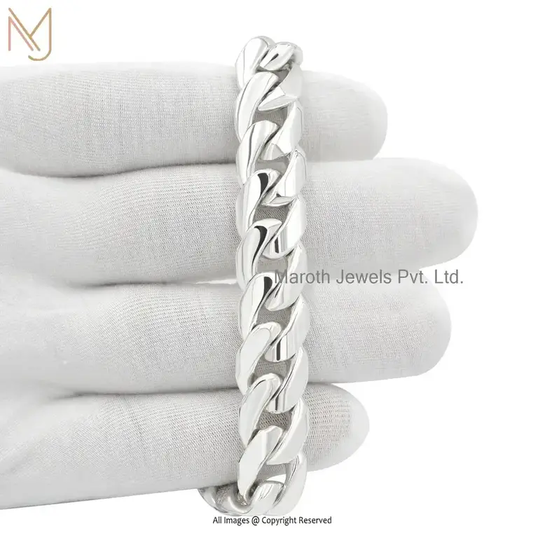 Wholesale 925 Silver Natural Silver Plated Diamond Man's Curb Chain Bracelet