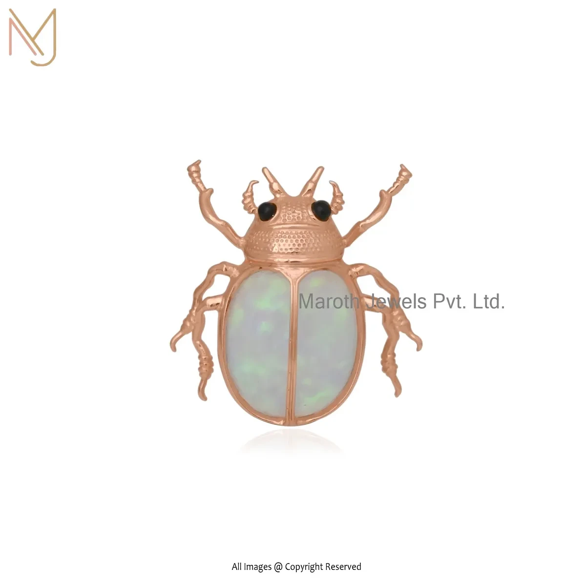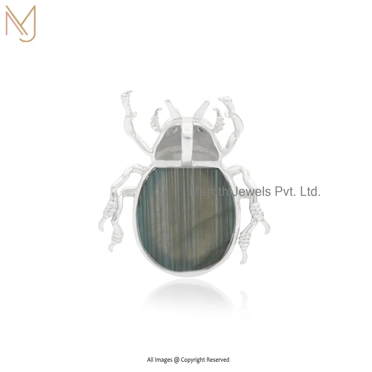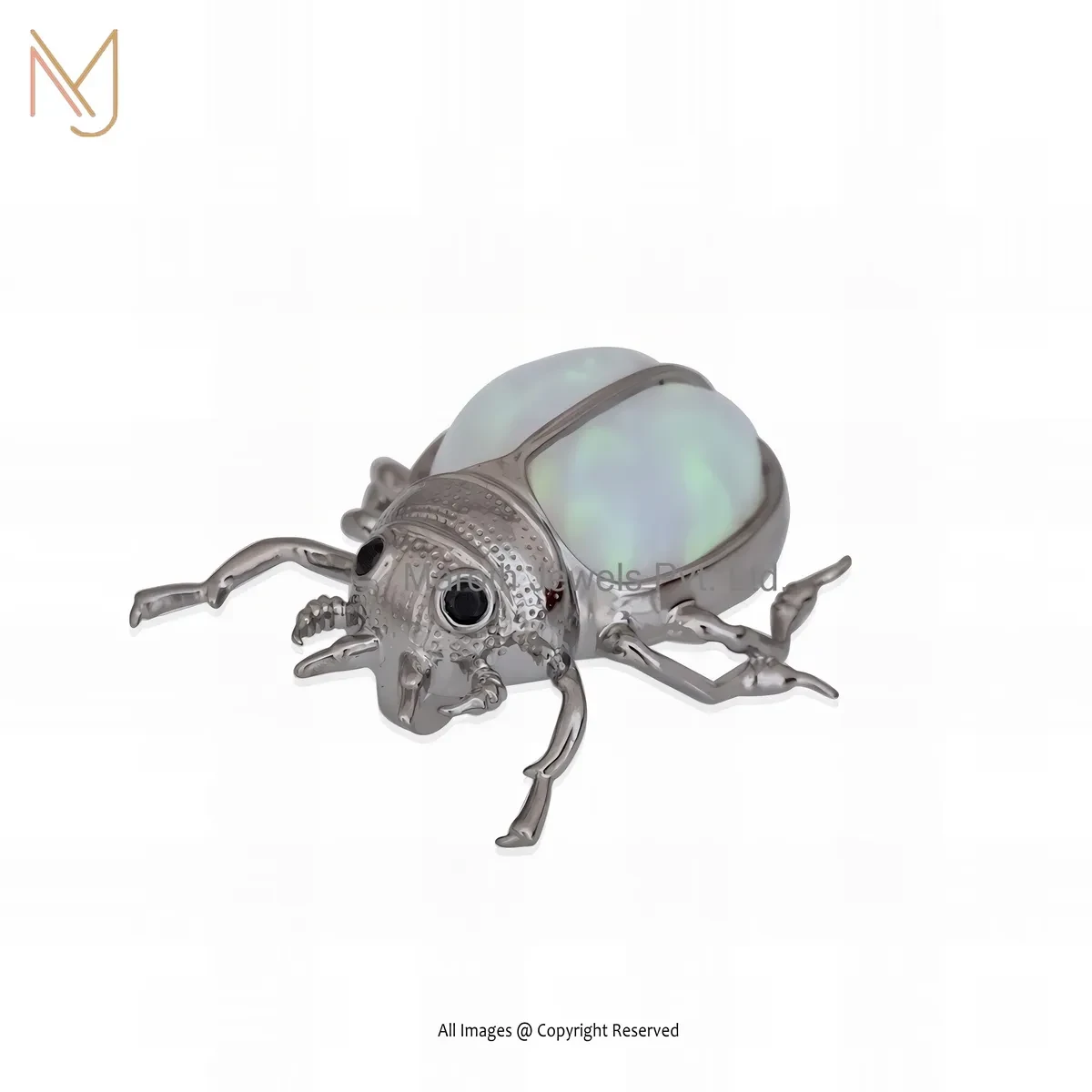 Wholesale 925 Silver Natural Silver Plated Ethiopian Opal And Black Cubic Zircon Scarab Pendant