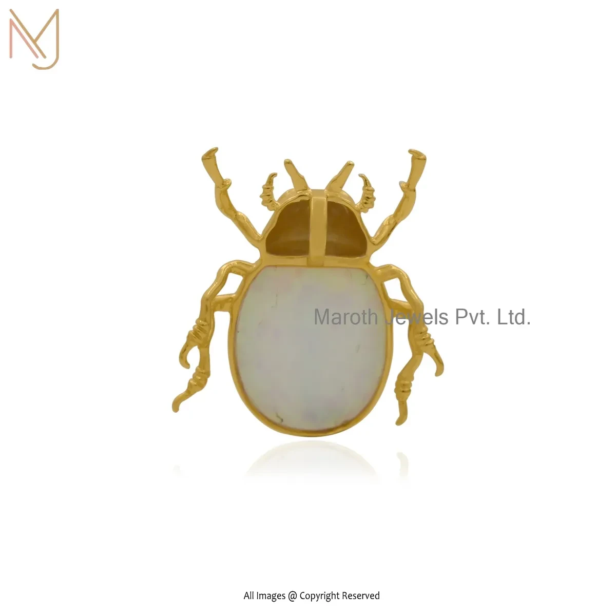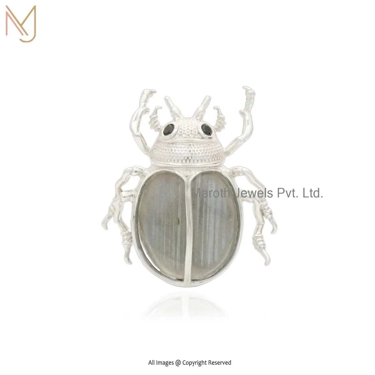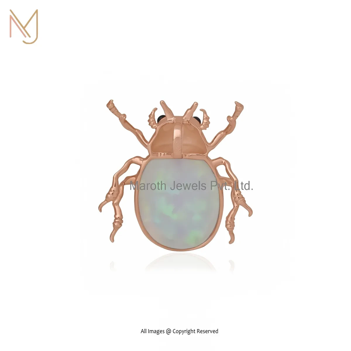 Wholesale 925 Silver Natural Silver Plated Ethiopian Opal And Black Cubic Zircon Scarab Pendant
