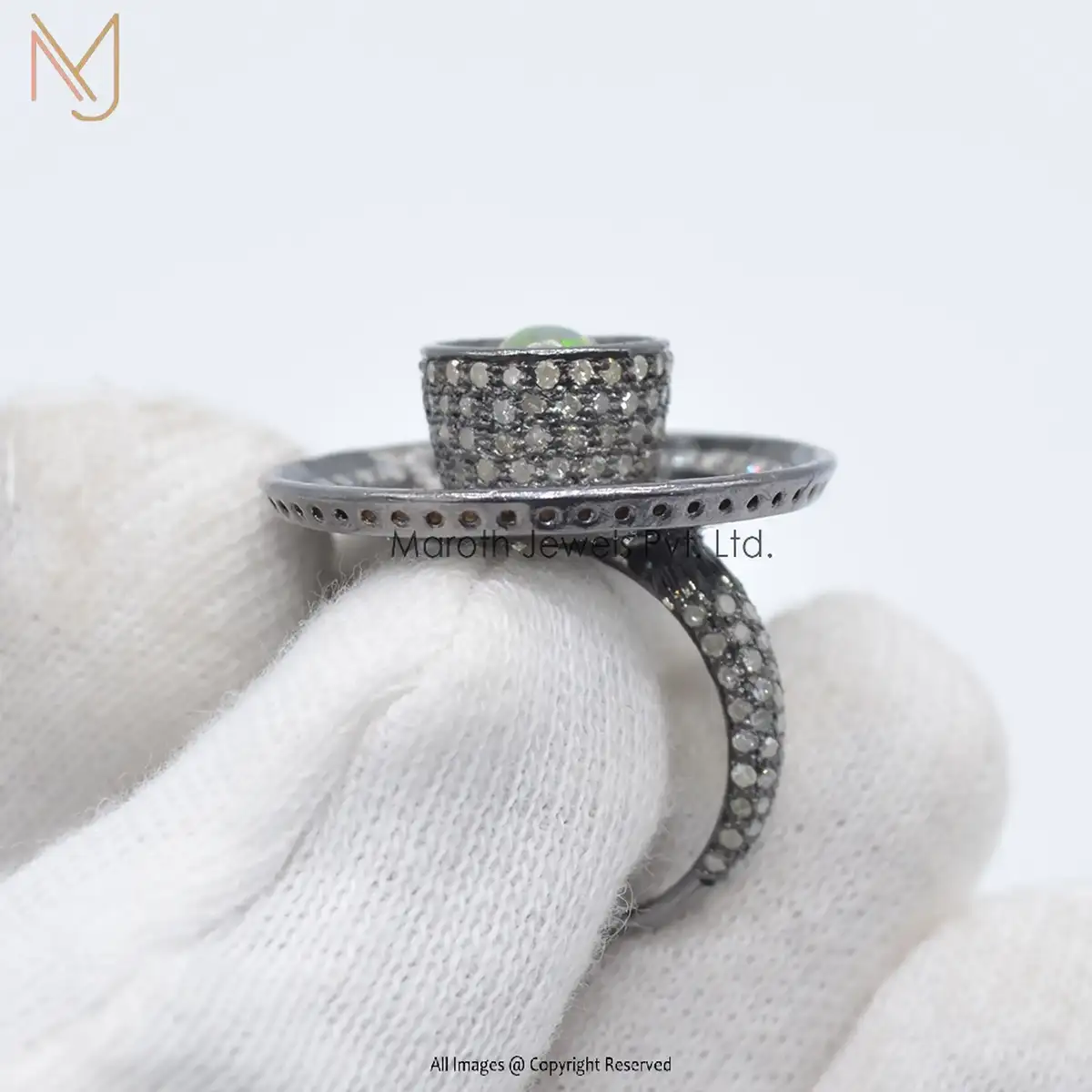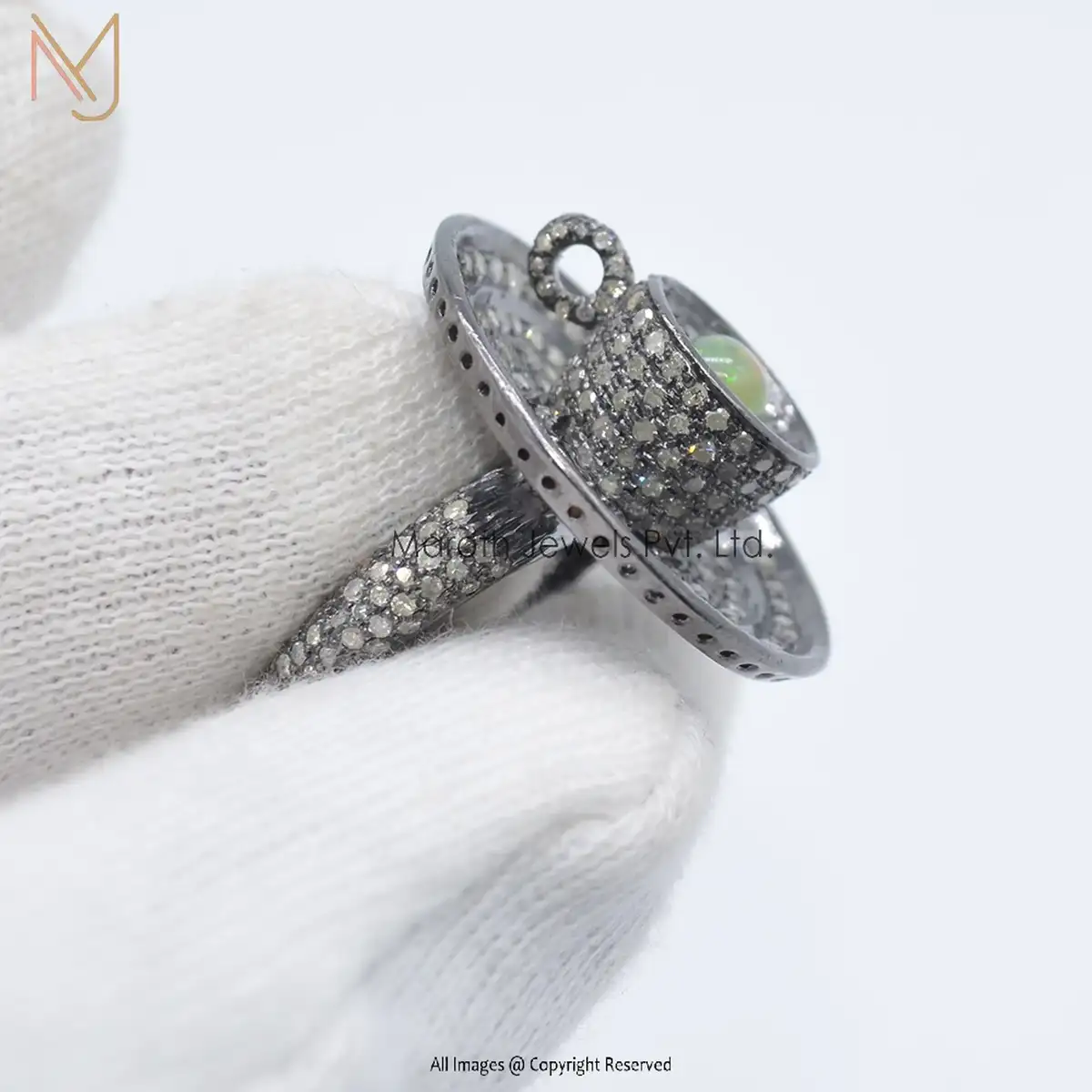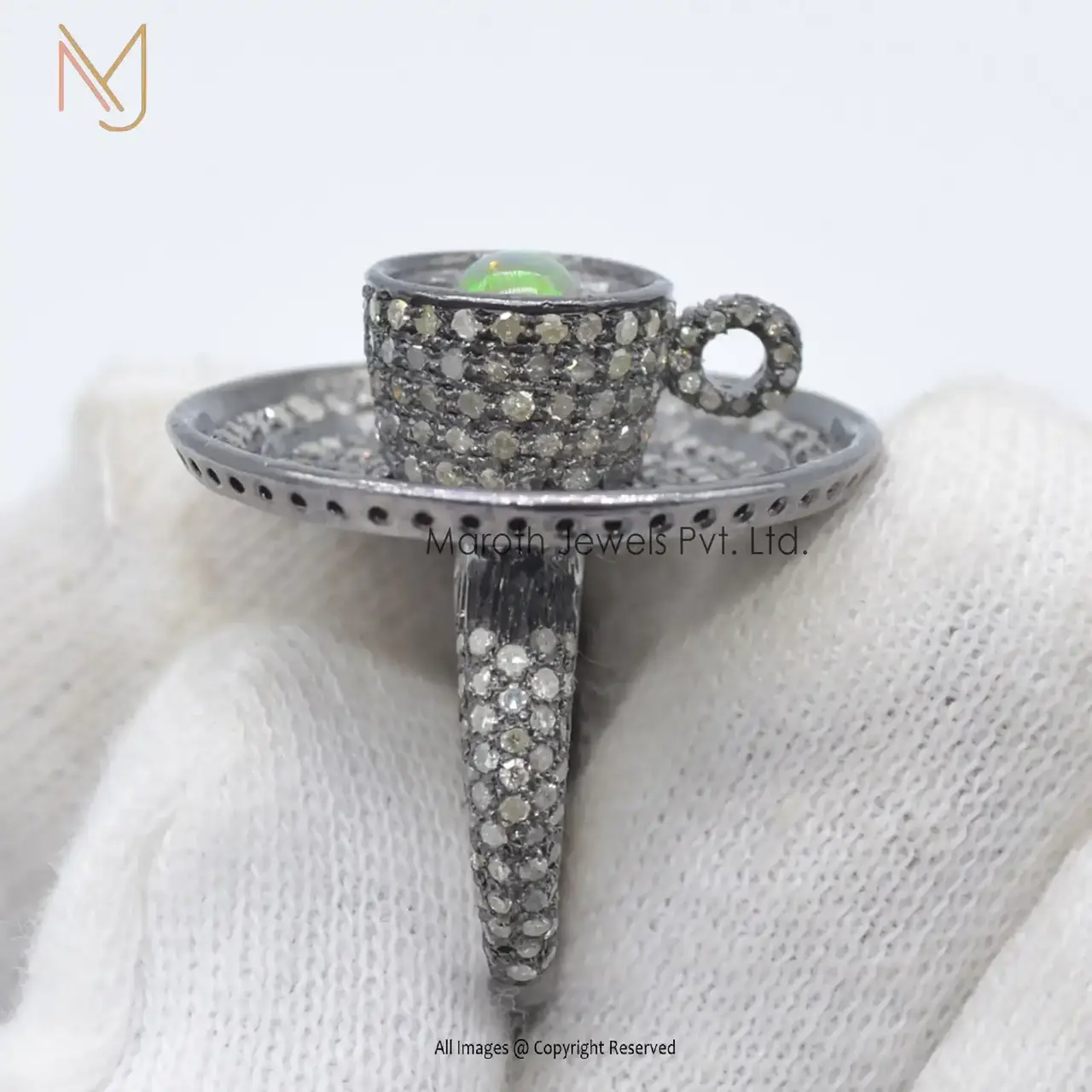 Wholesale 925 Silver Rhodium Plated Diamond & Opal Tea Cup Ring Jewelry