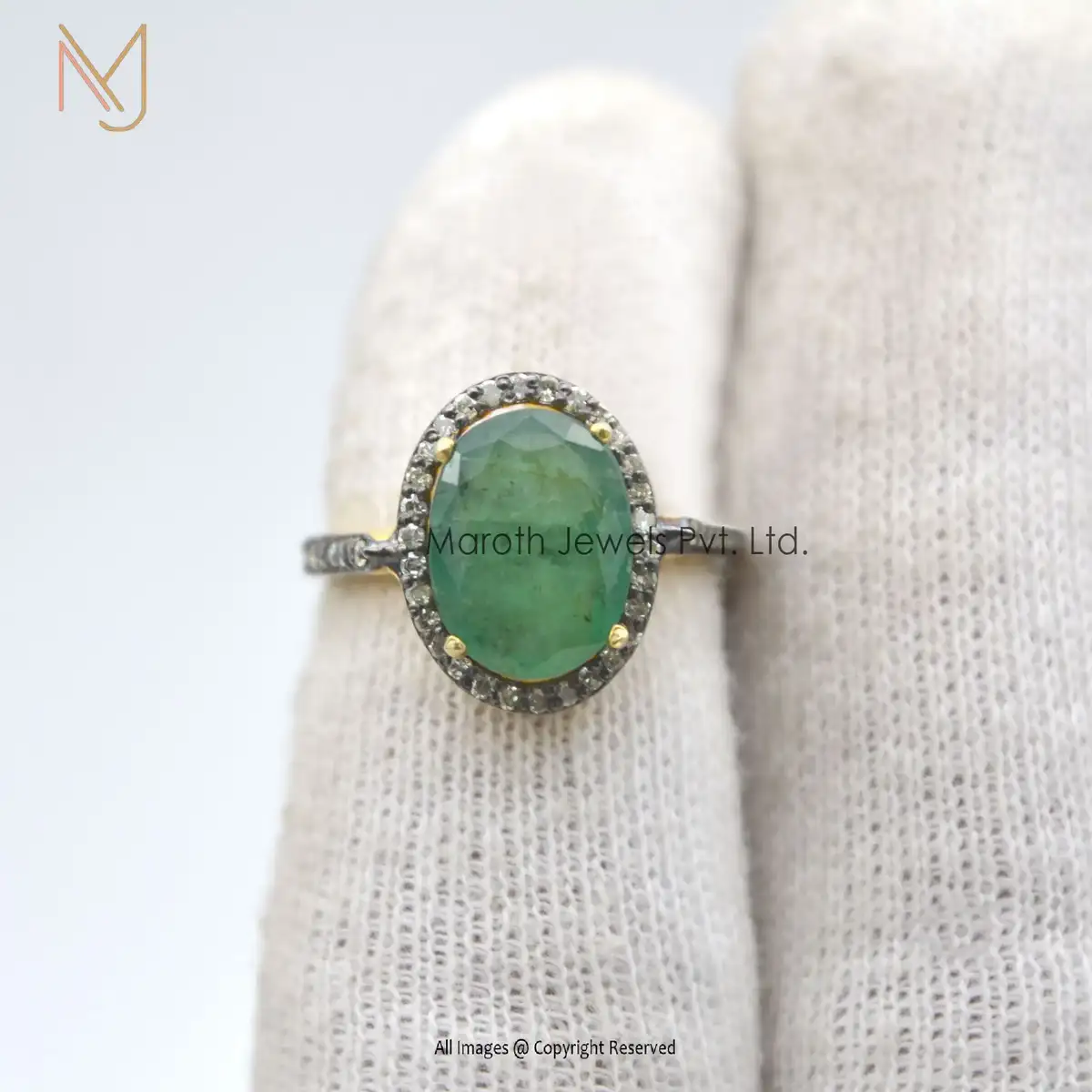 Wholesale 92.5 Silver Rhodium Plated Pave Diamond And Emerald Gemstone Ring Jewelry