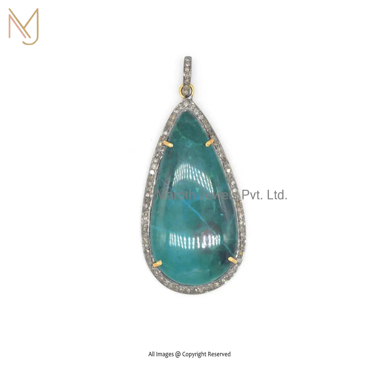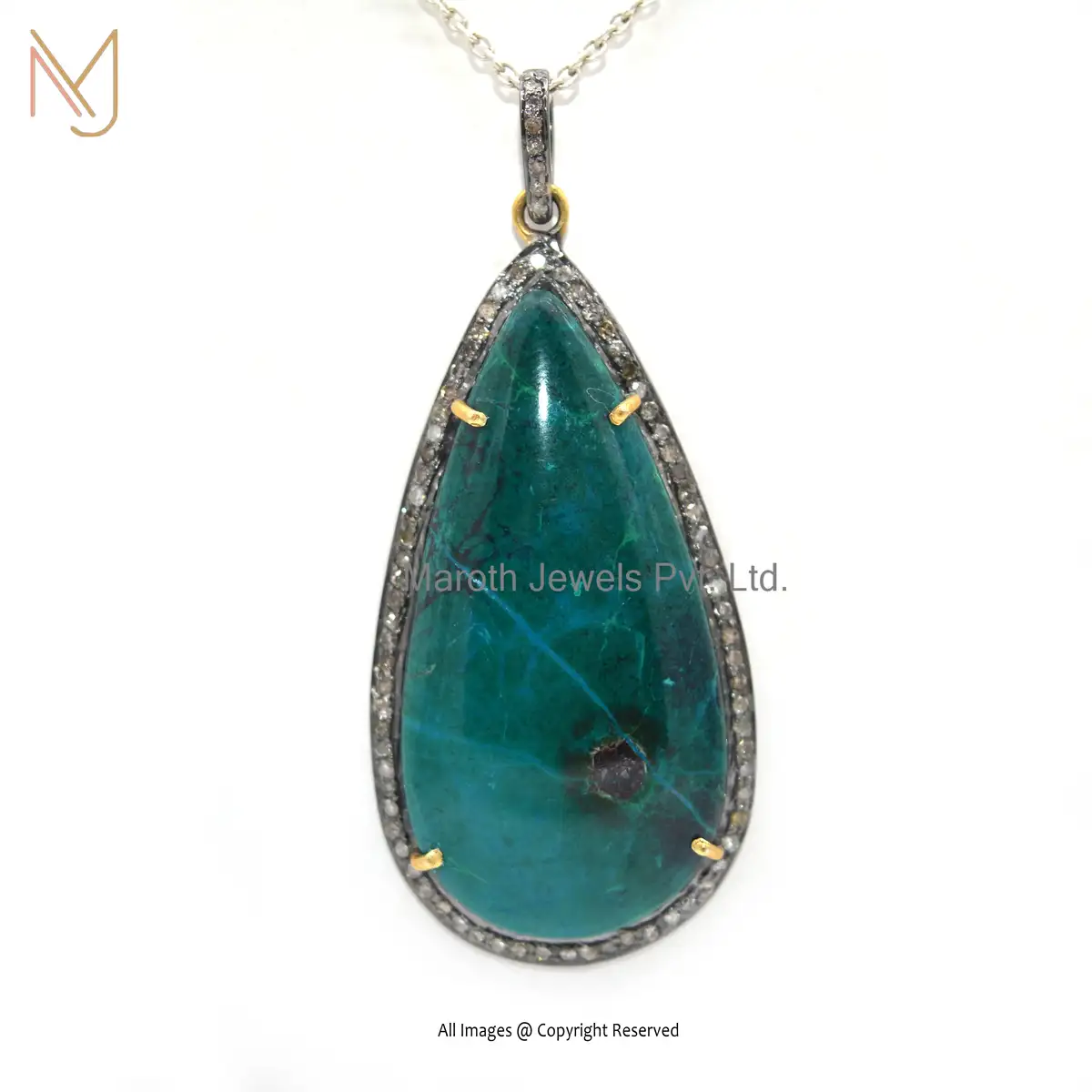 Wholesale 925 Silver Rhodium Plated Pave Diamond Chrysocolla Gemstone Pendant Jewelry