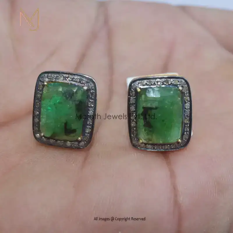 Wholesale 925 Silver Rhodium Plated Pave Diamond Emerald Designer Earrings