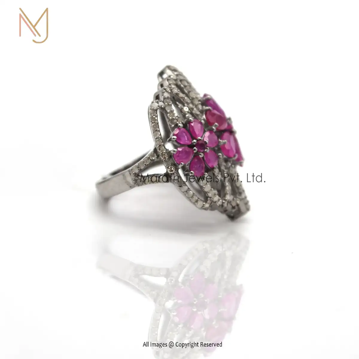 Wholesale 925 Silver Rhodium Plated Pave Diamond Ruby Gemstone Ring