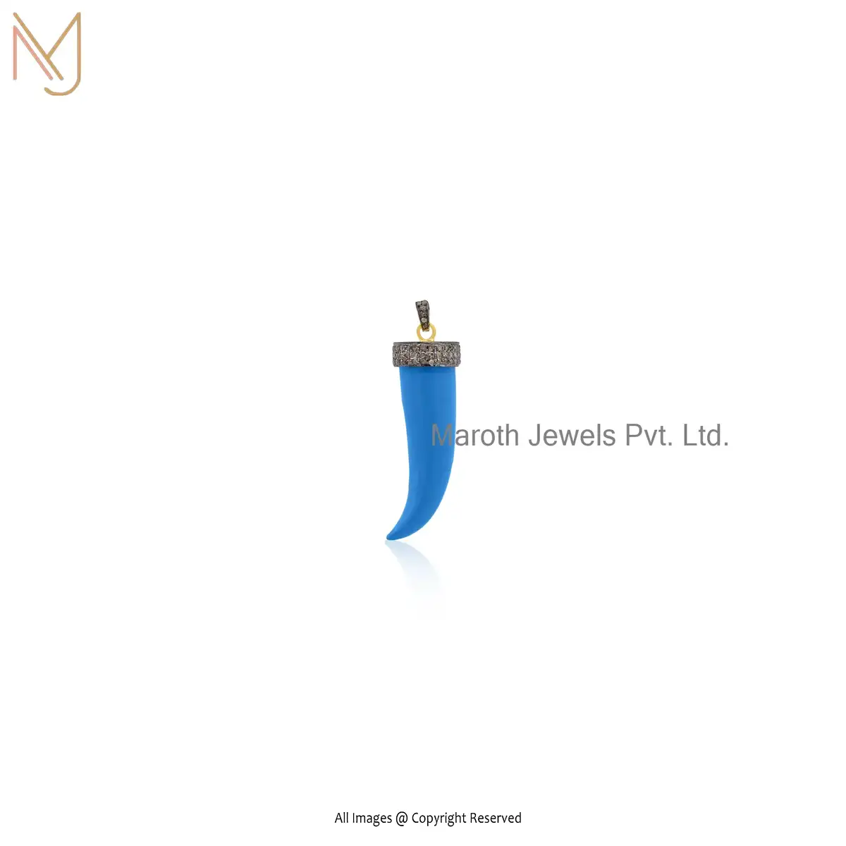 Wholesale 925 Silver Rhodium Yellow Gold Plated Pave Diamond Turquoise Horn Pendant Jewelry