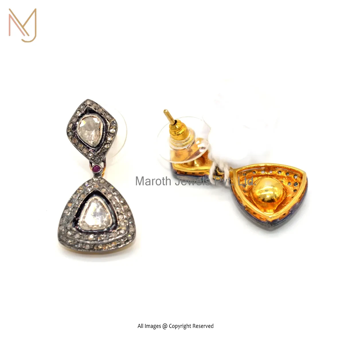 Wholesale 925 Silver Rhodium Yellow Gold Plated Ruby Pave Diamond Rose Cut Polki Diamond Dangle Earring