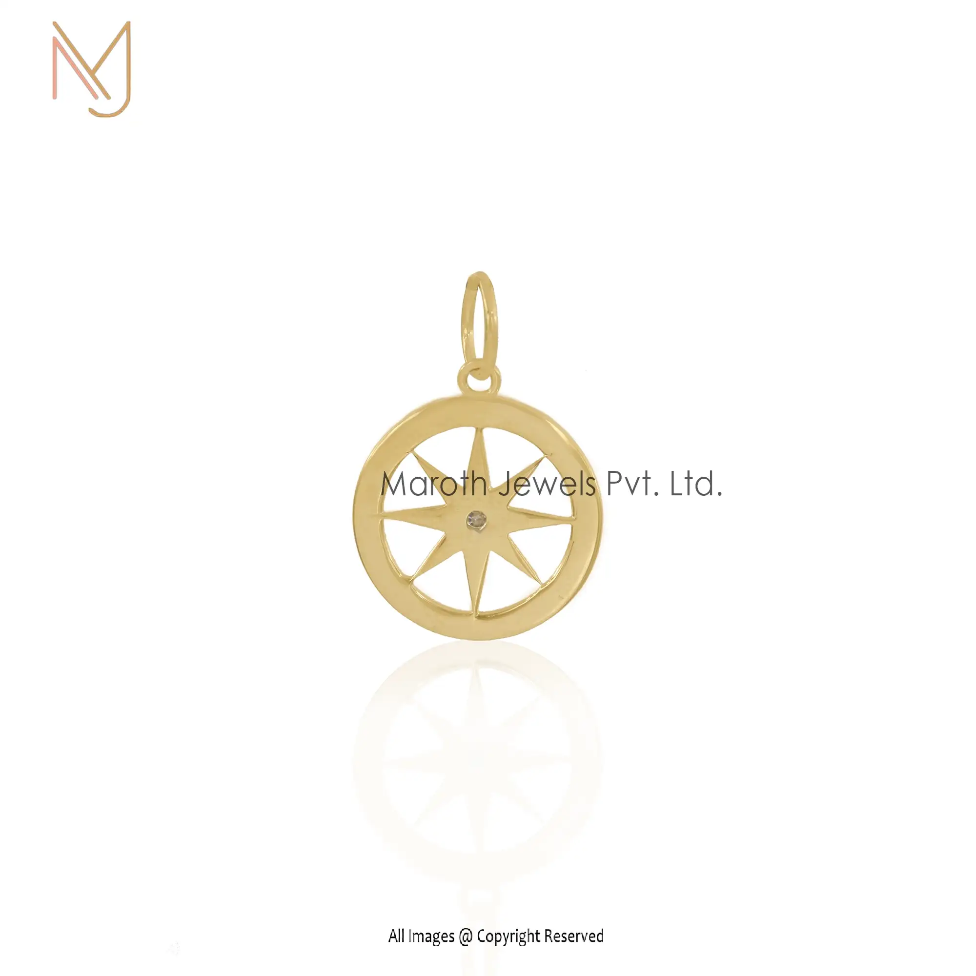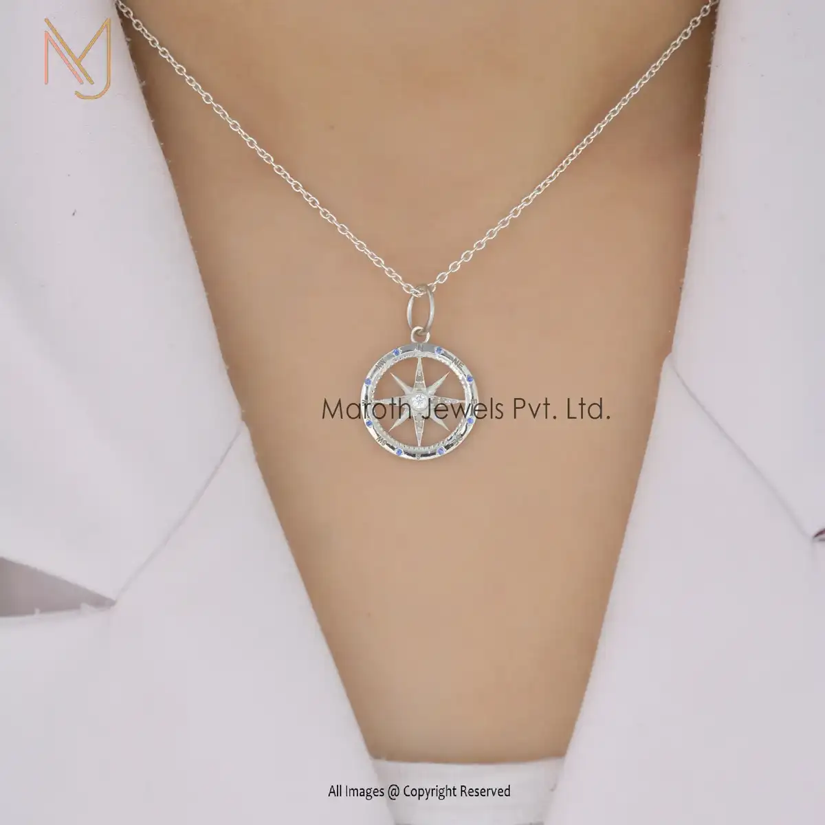 Wholesale 925 Silver White Gold Plated Blue Sapphire & Moissanite Diamond Compass Pendant Jewelry