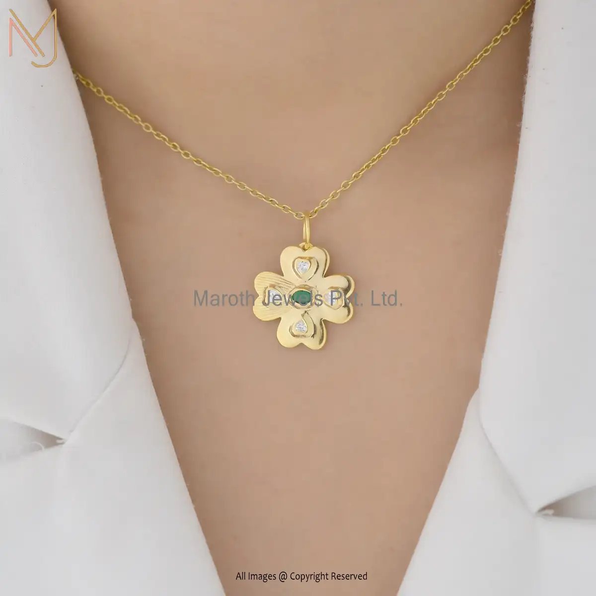 Wholesale 925 Silver White Gold Tsavorite And Moissanite Flower Leaf Pendant Jewelry