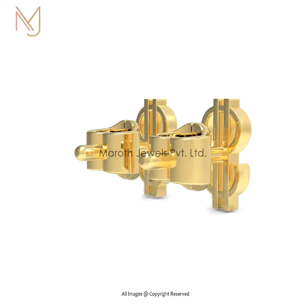 Wholesale 925 Silver Yellow Gold Dollar Design Studs Earrings