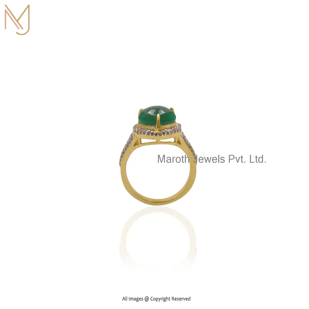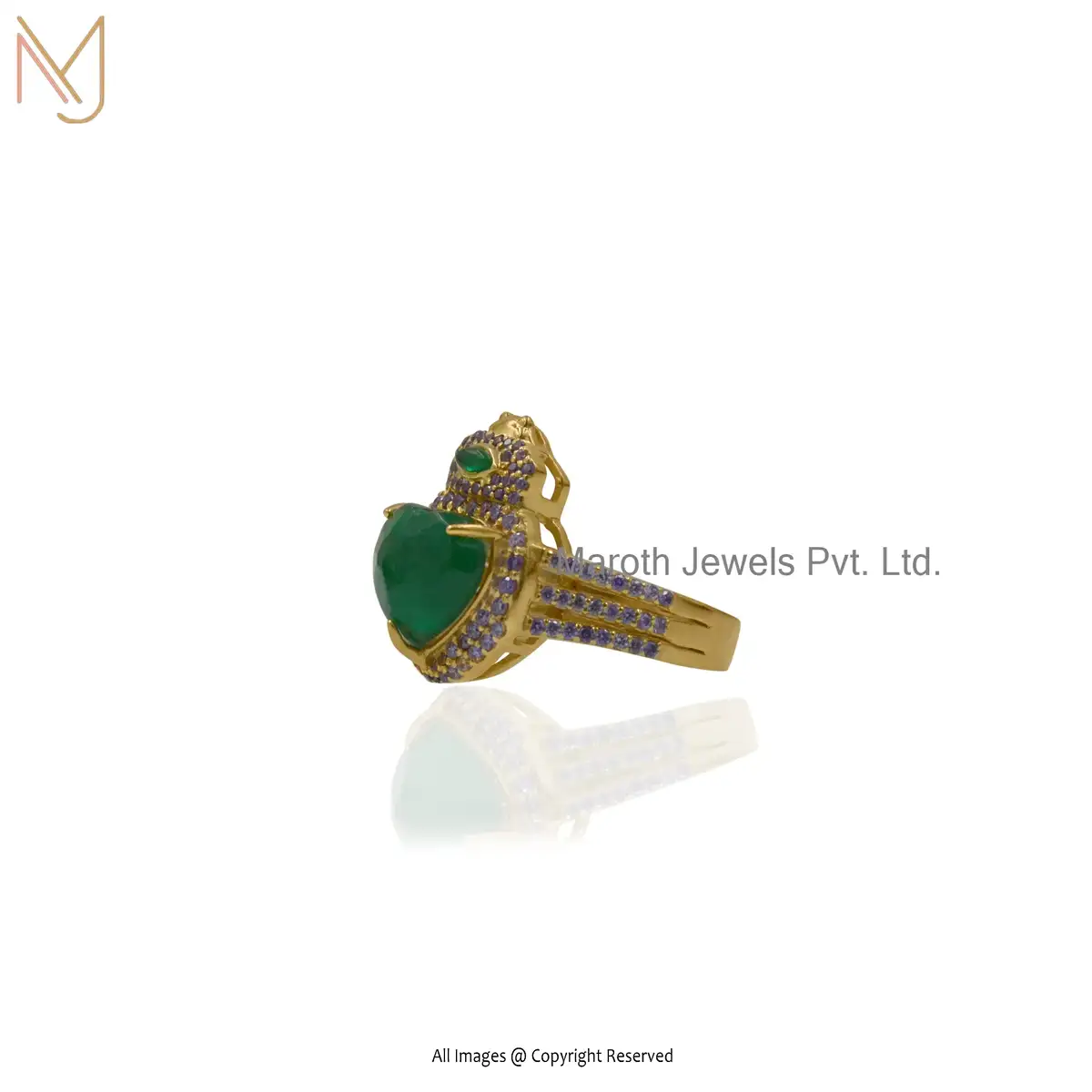 Wholesale 925 Silver Yellow Gold Green Cubic Zircon Amethyst Gemstone Bug Ring