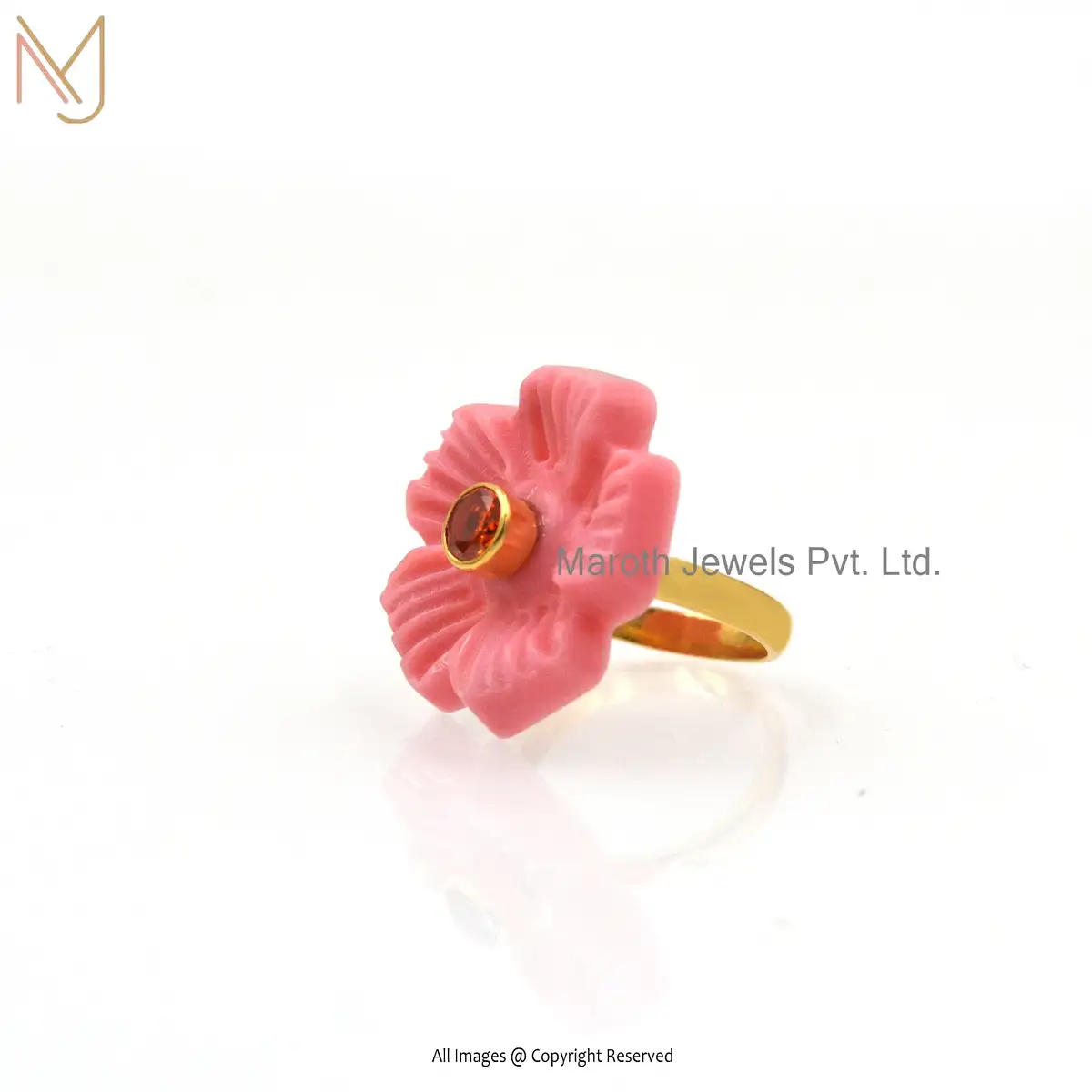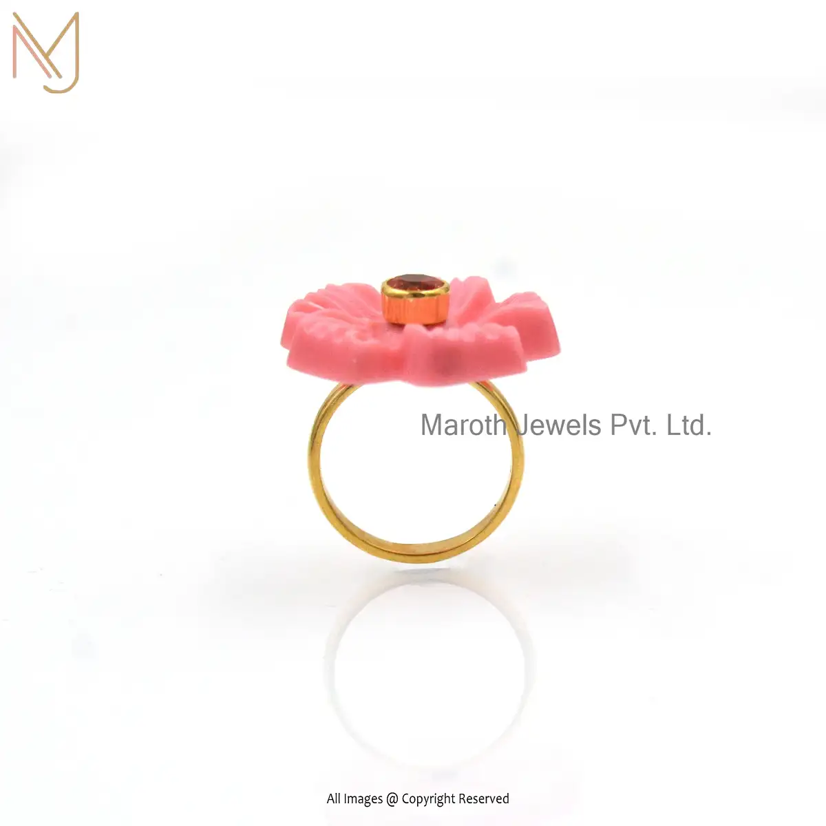 Wholesale 925 silver Yellow Gold Pink Onyx Pink Opal Cubic Zircon Flower Ring