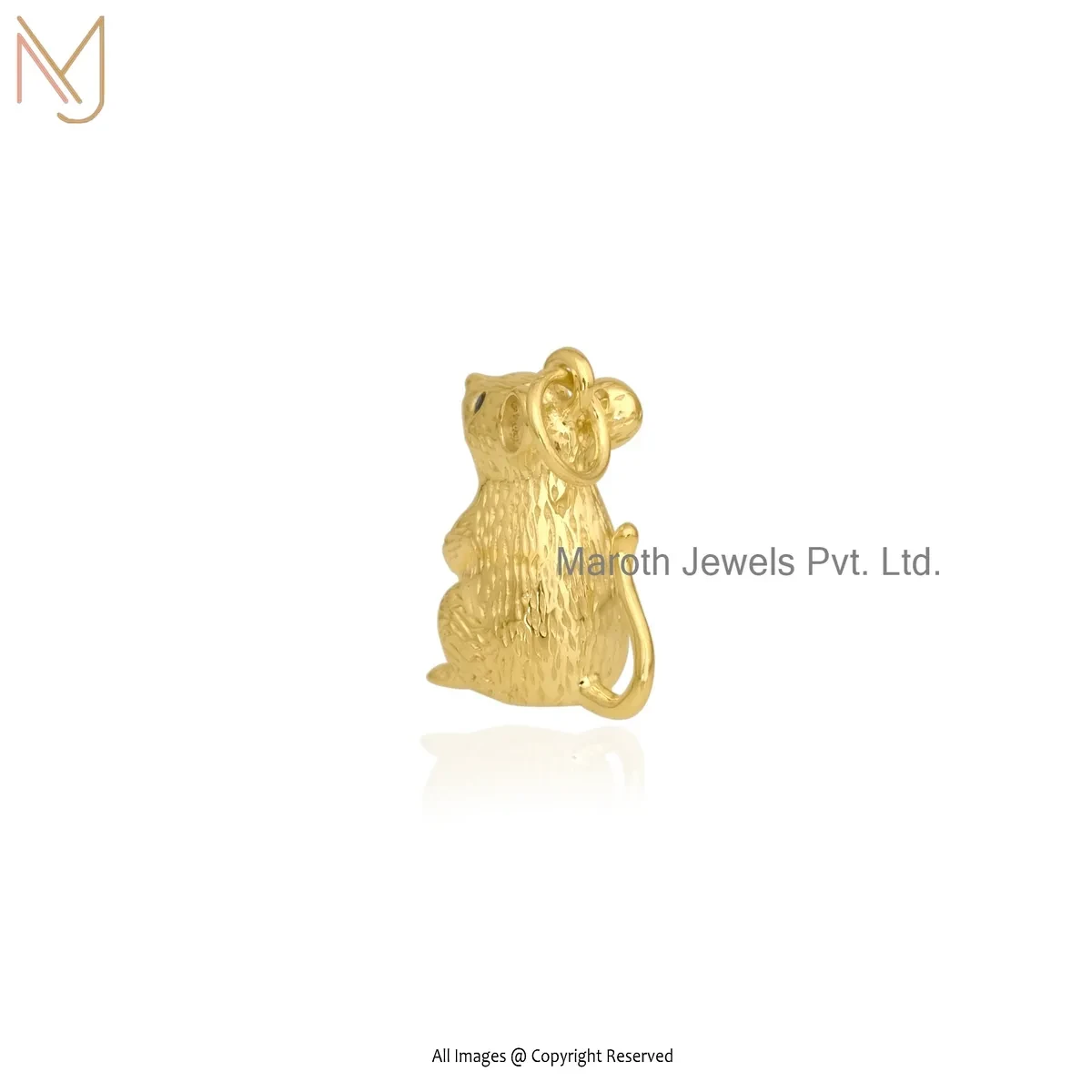 Wholesale 925 Silver Yellow Gold Plated Black Cubic Zircon Mouse Pendant