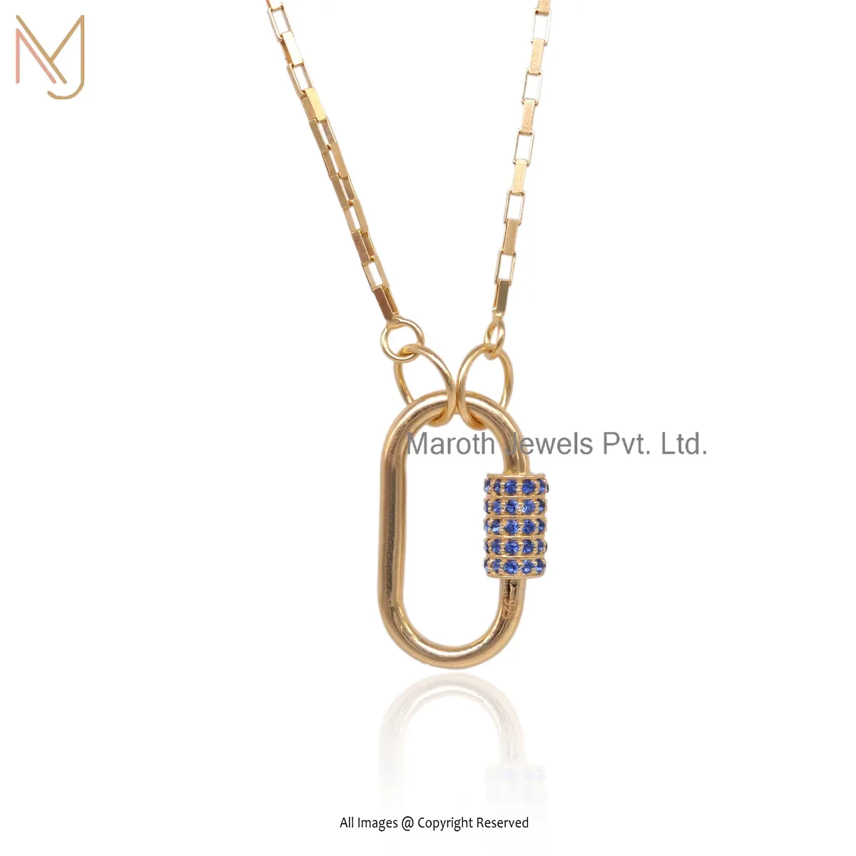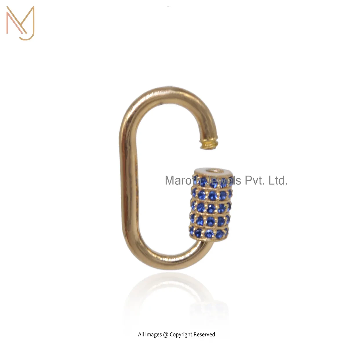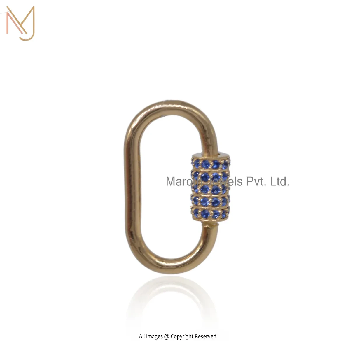 Wholesale 925 Silver Yellow Gold Plated Blue Sapphire Gemstone Carabiner Lock Jewelry