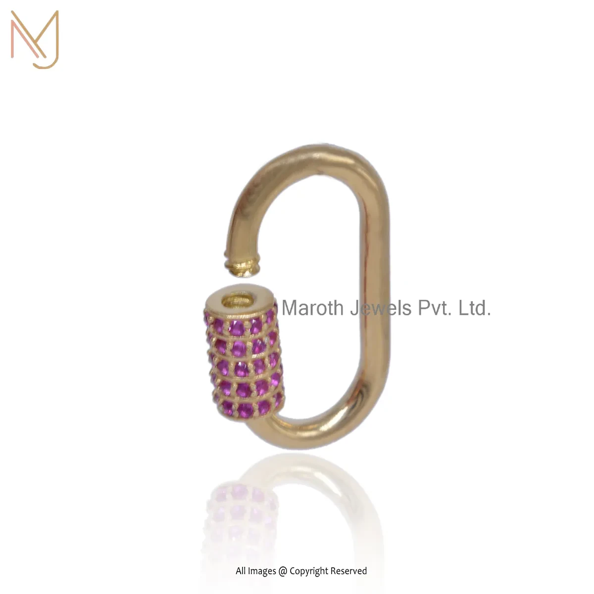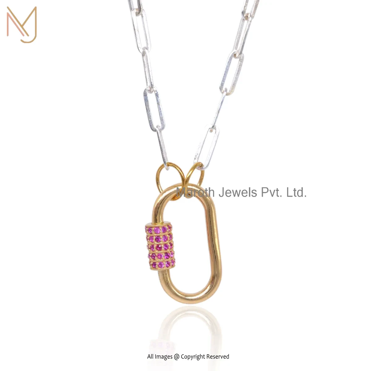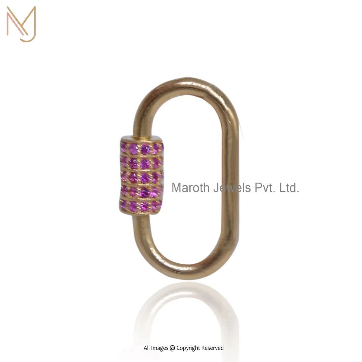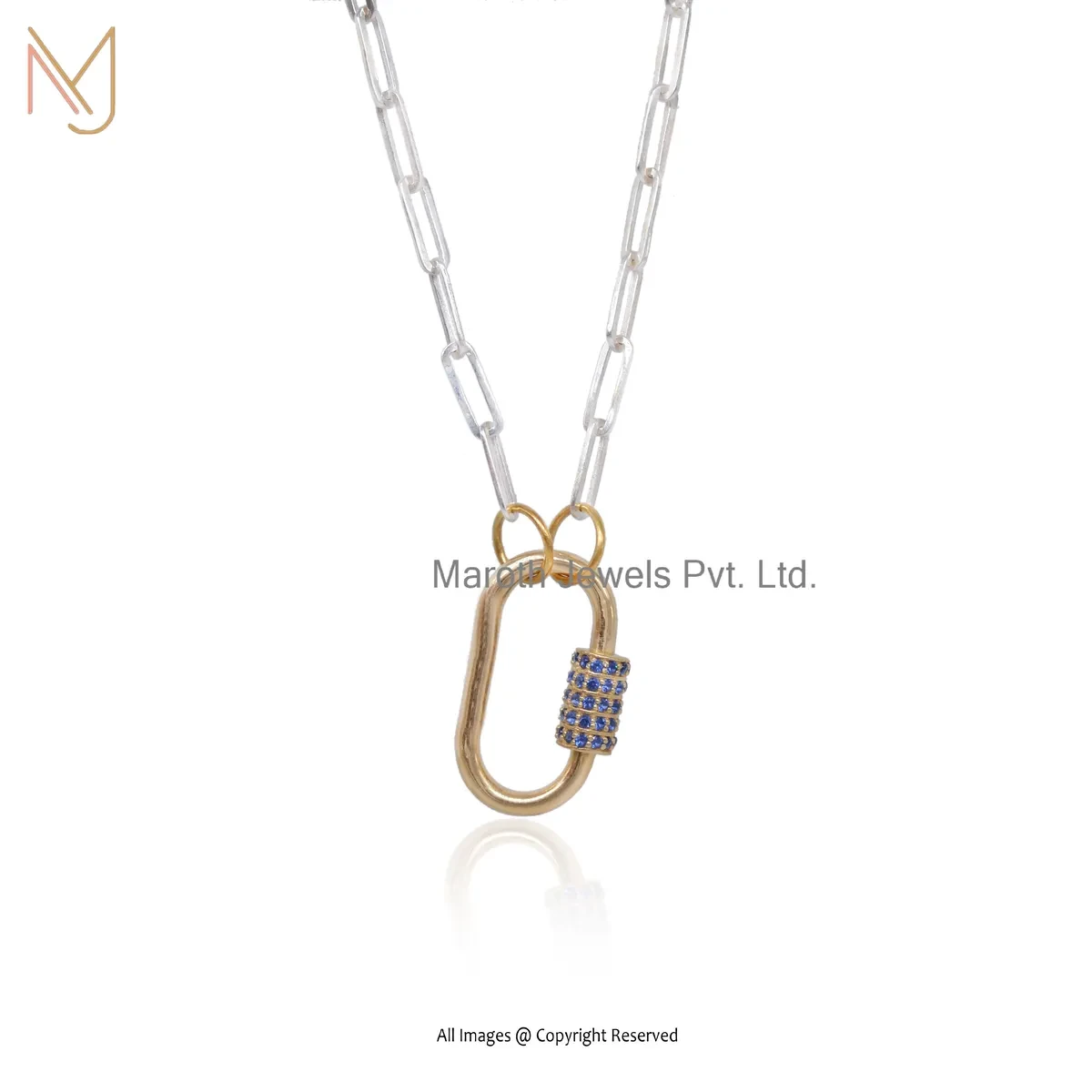 Wholesale 925 Silver Yellow Gold Plated Blue Sapphire Gemstone Carabiner Lock Jewelry