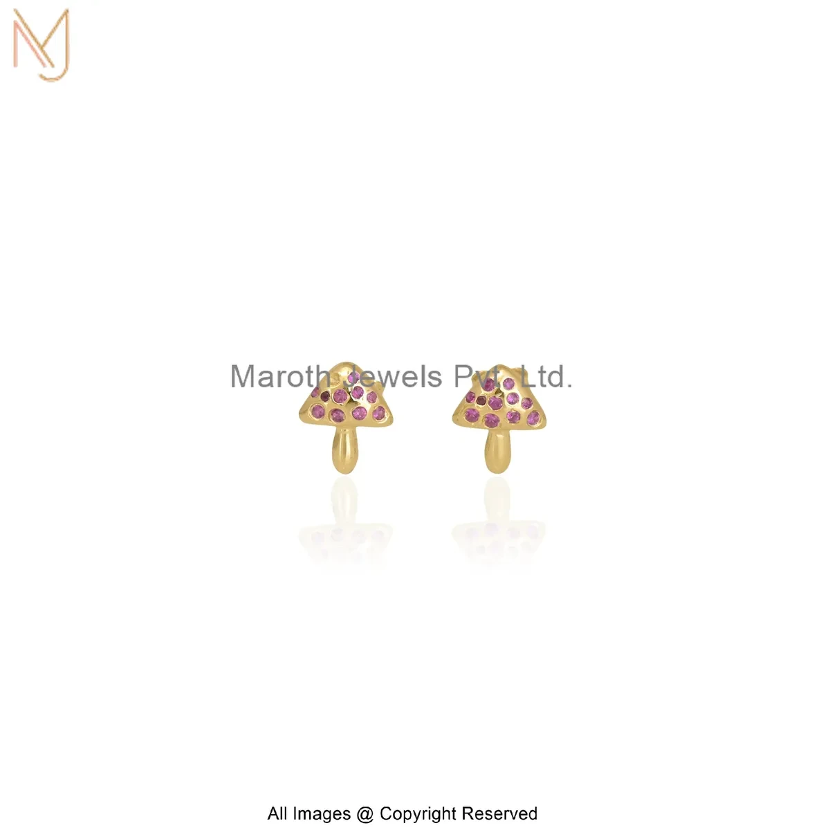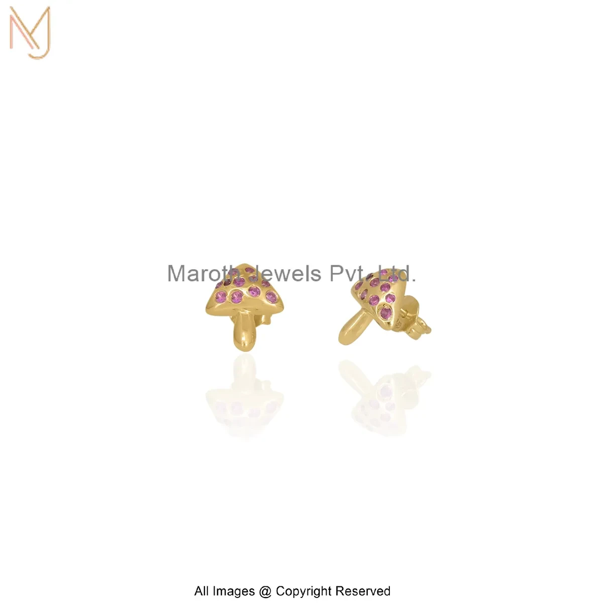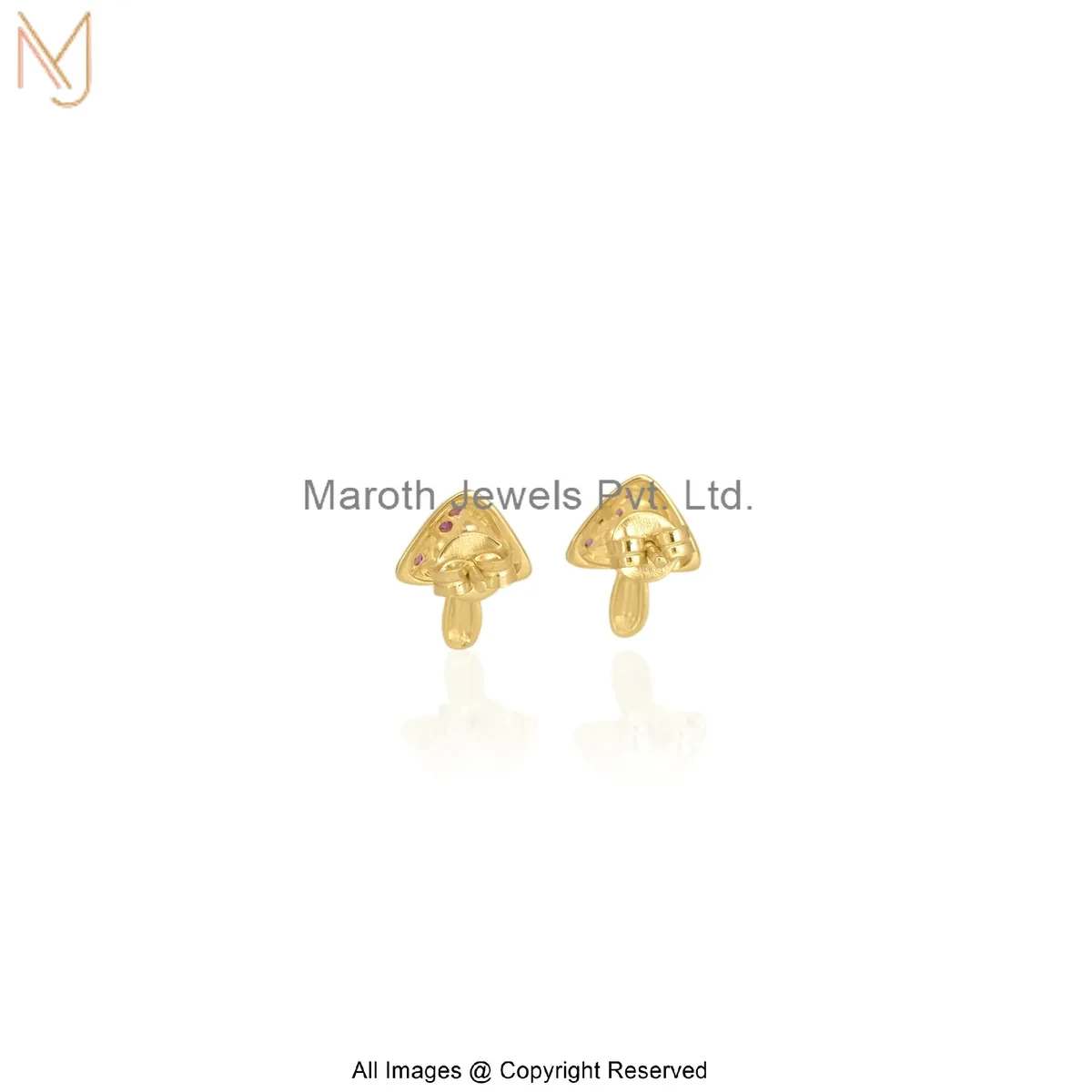 Wholesale 925 Silver Yellow Gold Plated Cubic Zircon Gemstone Gold Tiny Mushroom Stud Earring