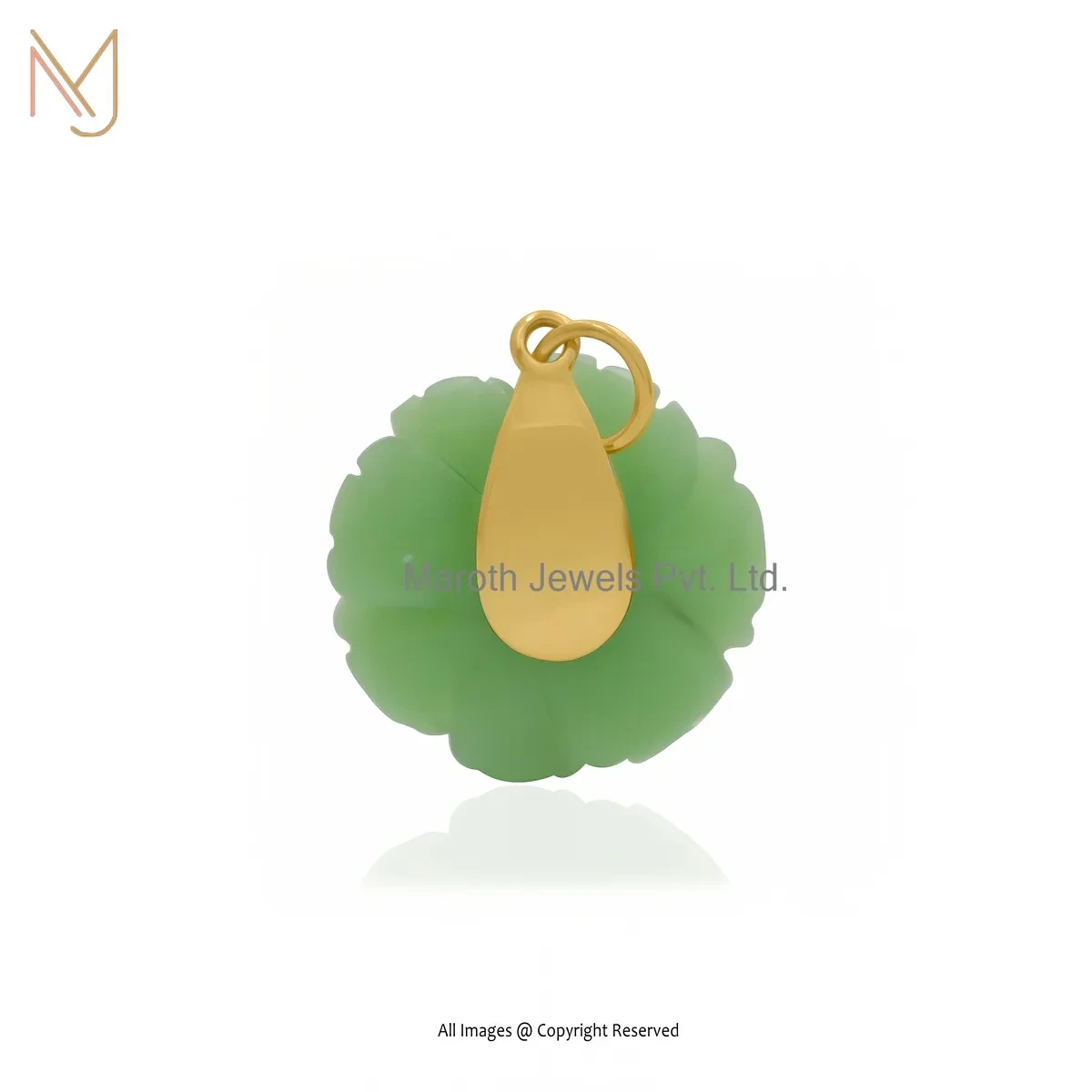 Wholesale 925 Silver Yellow Gold Plated Cubic Zircon & Green Opal Flower Pendant