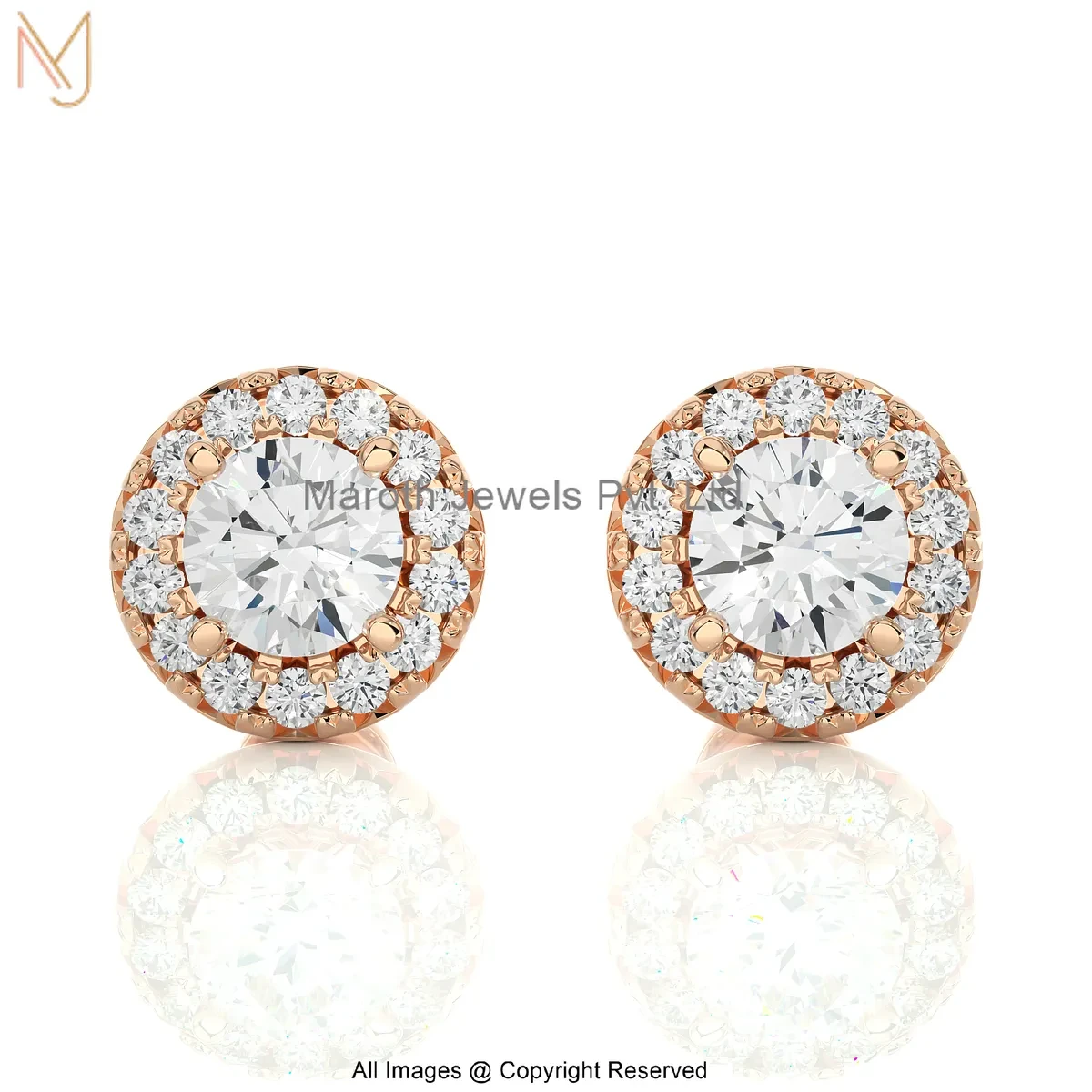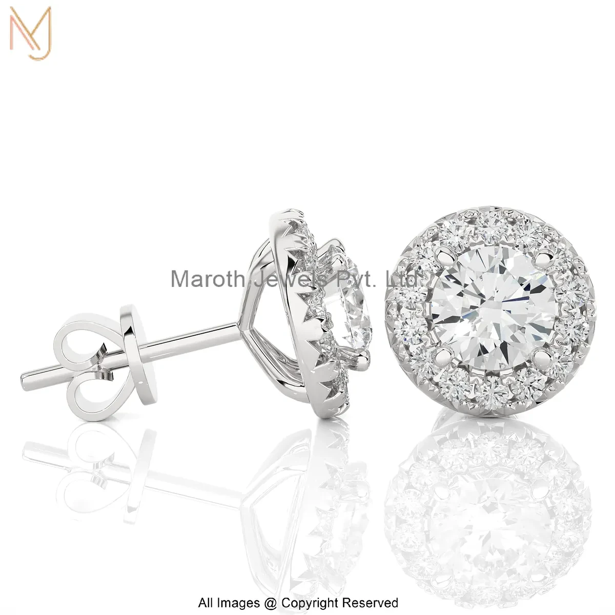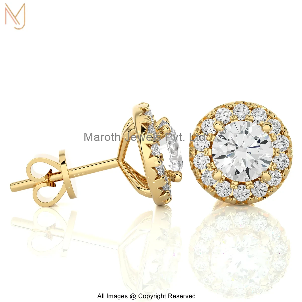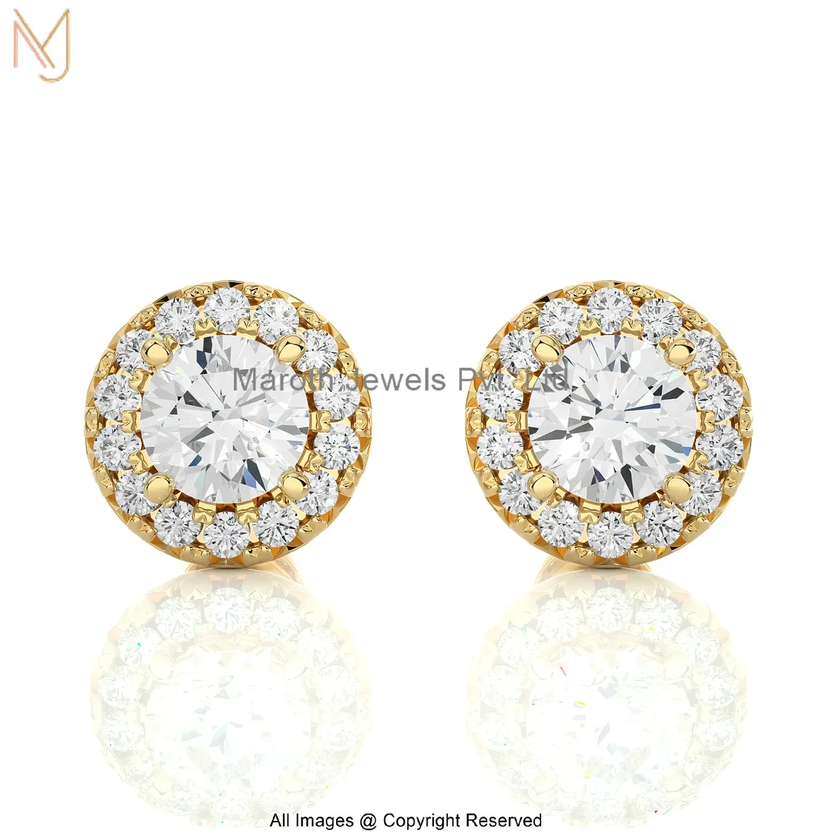 Wholesale 925 Silver Yellow Gold Plated Cubic Zircon Lab Grown Diamond Round Halo Studs Earrings