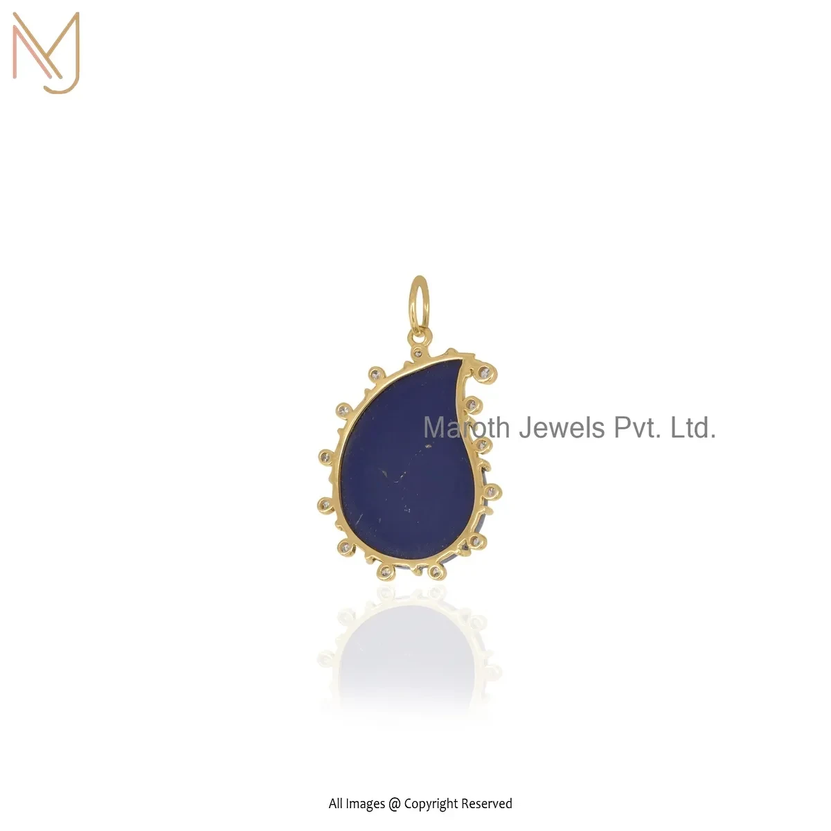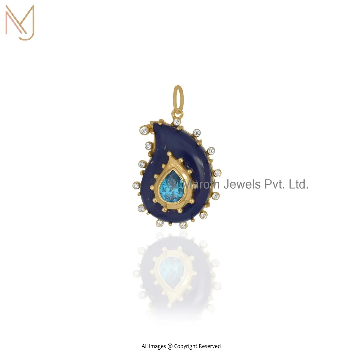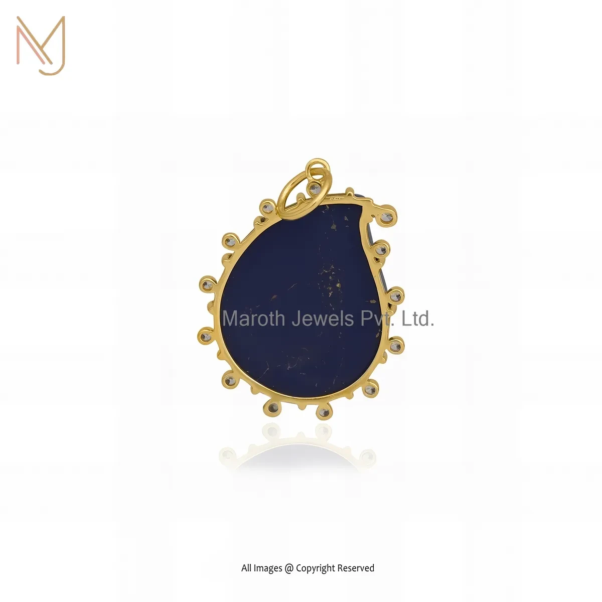 Wholesale 925 Silver Yellow Gold Plated Cubic Zircon & Lapiz Lazuli Gemstone Drop Pendant