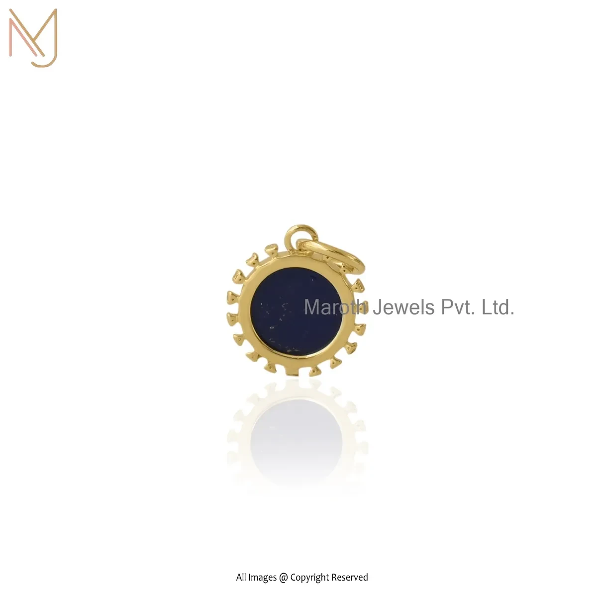 Wholesale 925 Silver Yellow Gold Plated Cubic Zircon & Lapiz Lazuli Gemstone Star Diamond Disc Pendant