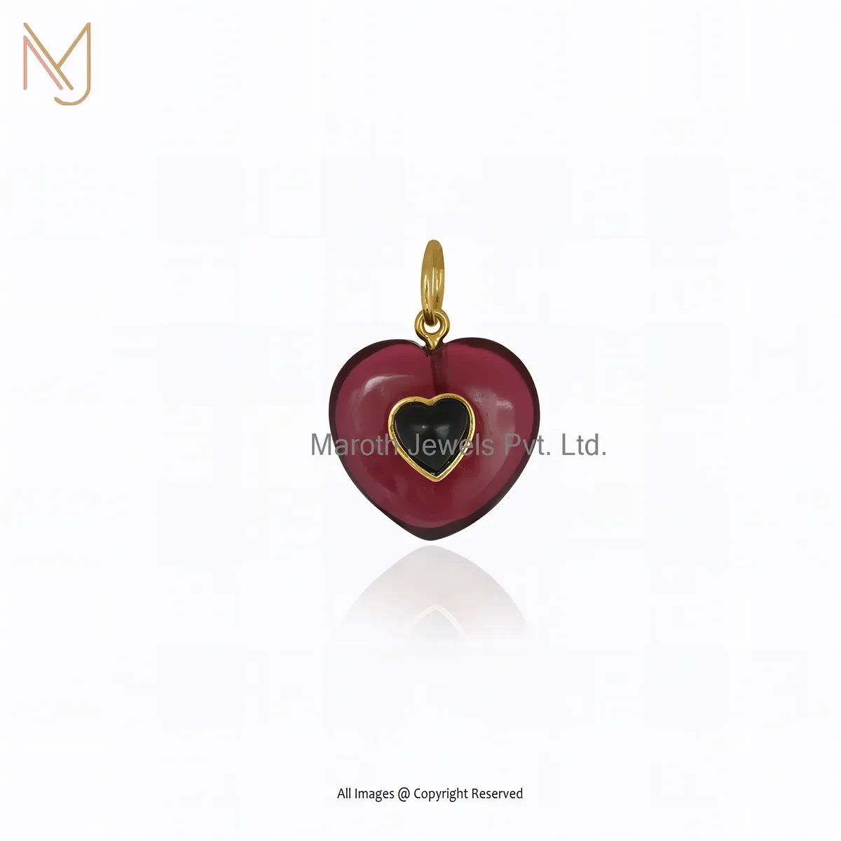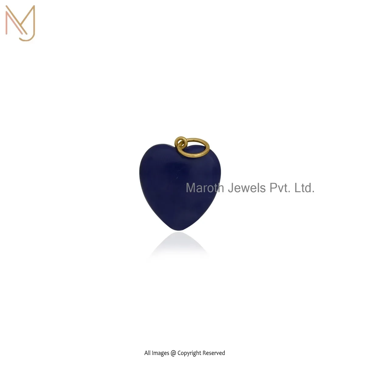 Wholesale 925 Silver Yellow Gold Plated Cubic Zircon & Lapiz Lazuli Heart Charm Pendant