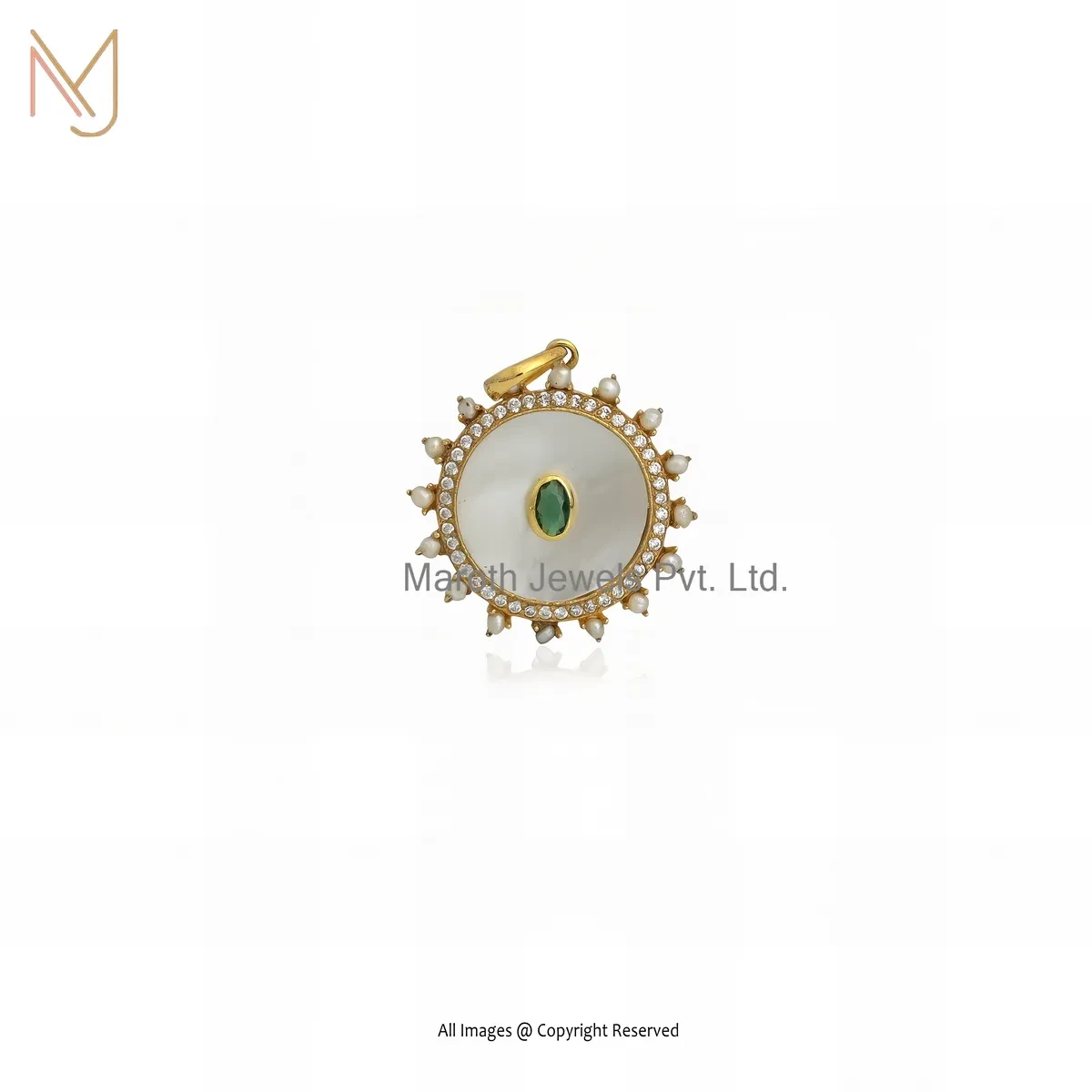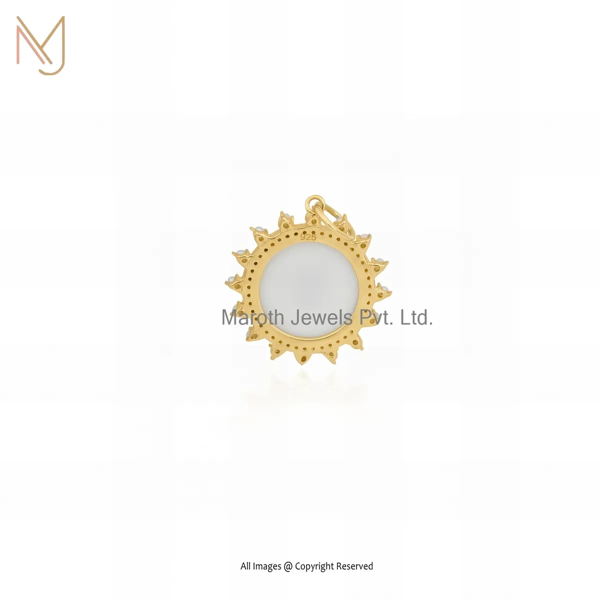 Wholesale 925 Silver Yellow Gold Plated Cubic Zircon & Mother Of Pearl Gemstone Disc Pendant
