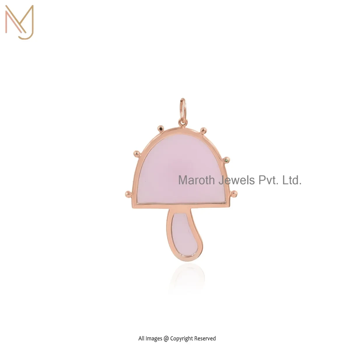 Wholesale 925 Silver Yellow Gold Plated Cubic Zircon & Rose Quartz Gemstone Mushroom Pendant Jewelry