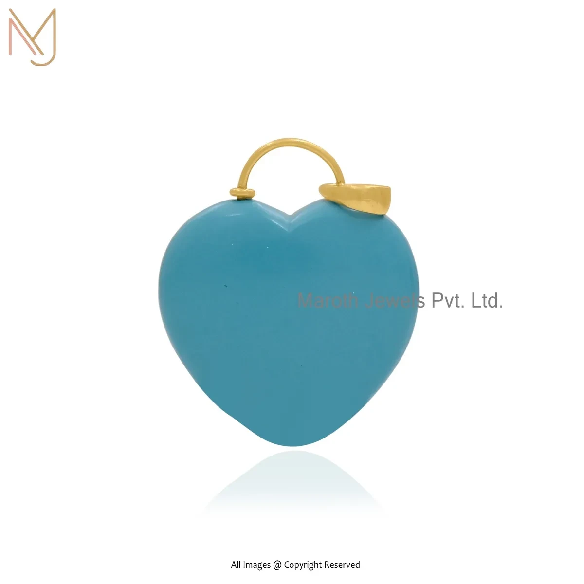Wholesale 925 Silver Yellow Gold Plated Cubic Zircon & Turquoise Gemstone Heart Pendant
