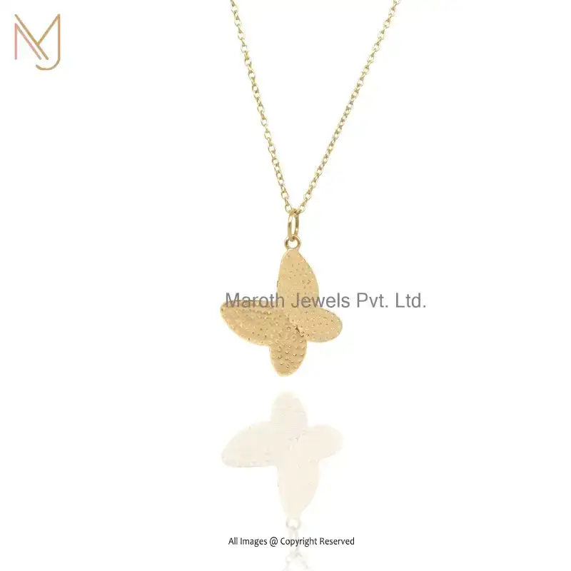 Wholesale 925 Silver Yellow Gold Plated Diamond Cubic Zircon Butterfly Pendant