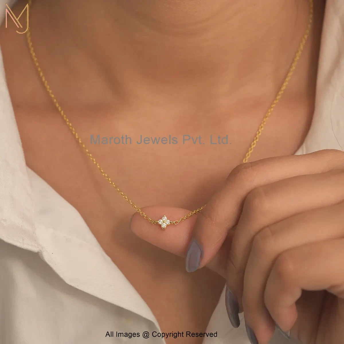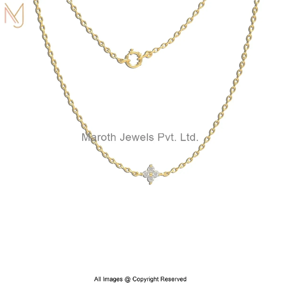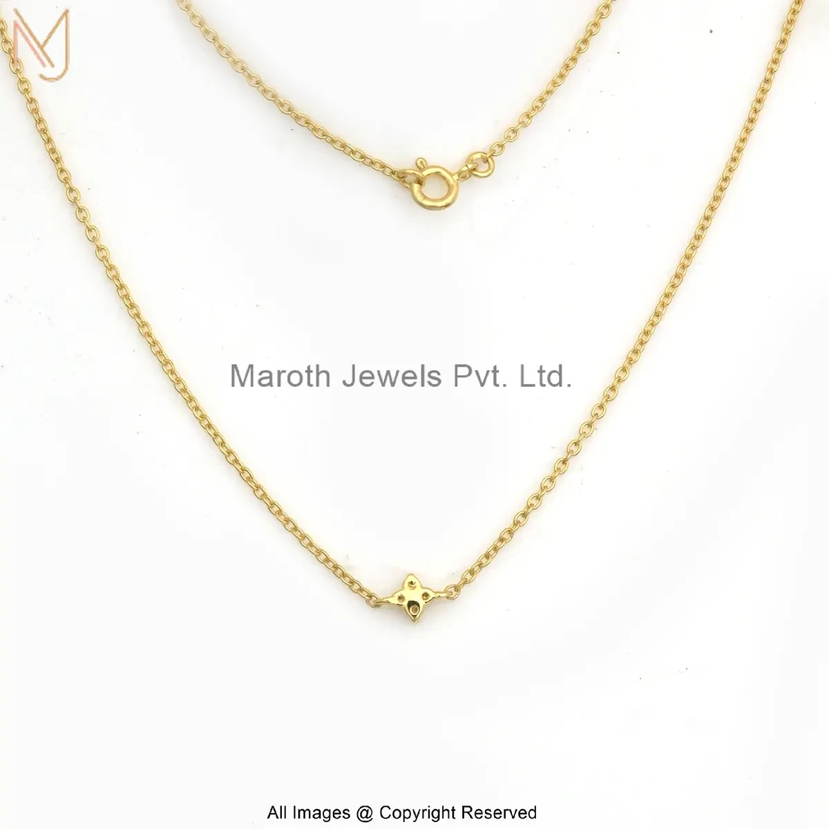 Wholesale 925 Silver Yellow Gold Plated Moissanite Diamond Four-Petaled Floral Motif Necklace Jewelry
