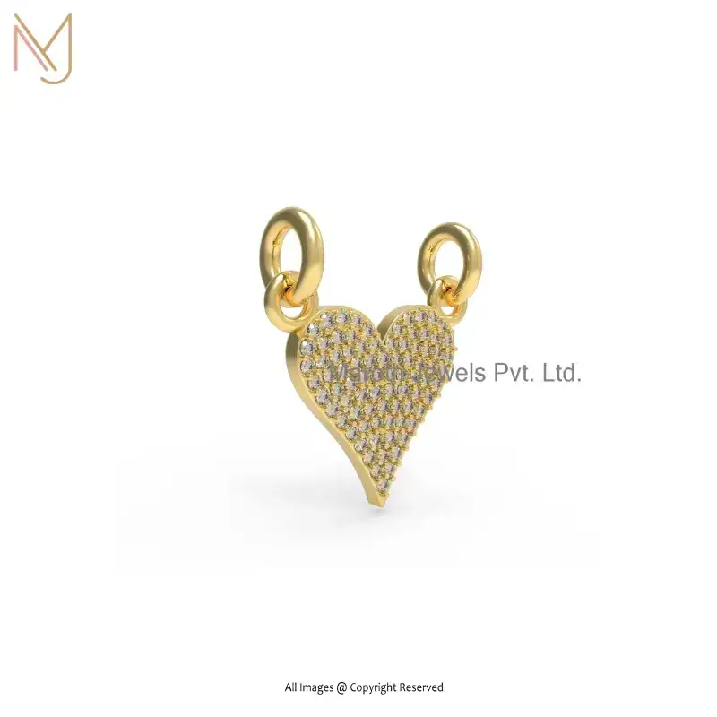 Wholesale 925 Silver Yellow Gold Plated Pave Diamond Heart Pendant