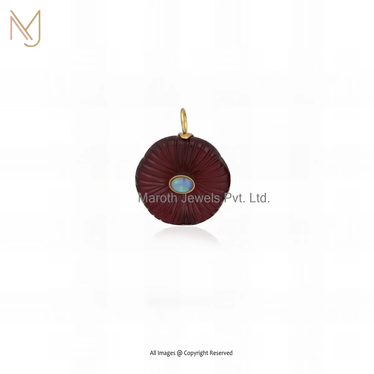 Wholesale 925 Silver Yellow Gold Plated Red Coral And Ethiopian Opal Gemstone Flower Pendant