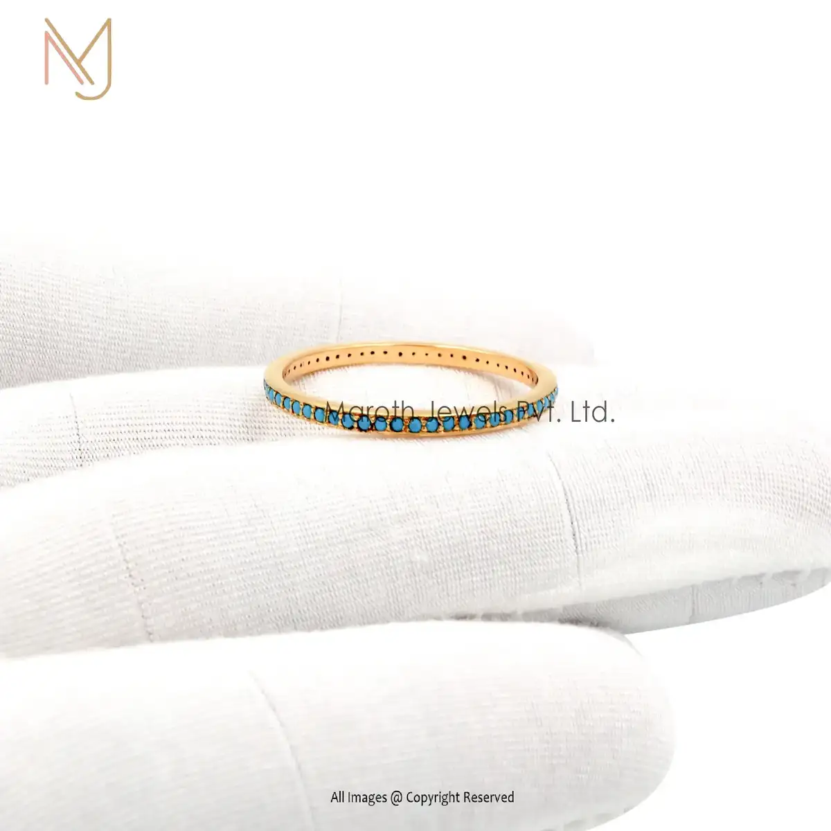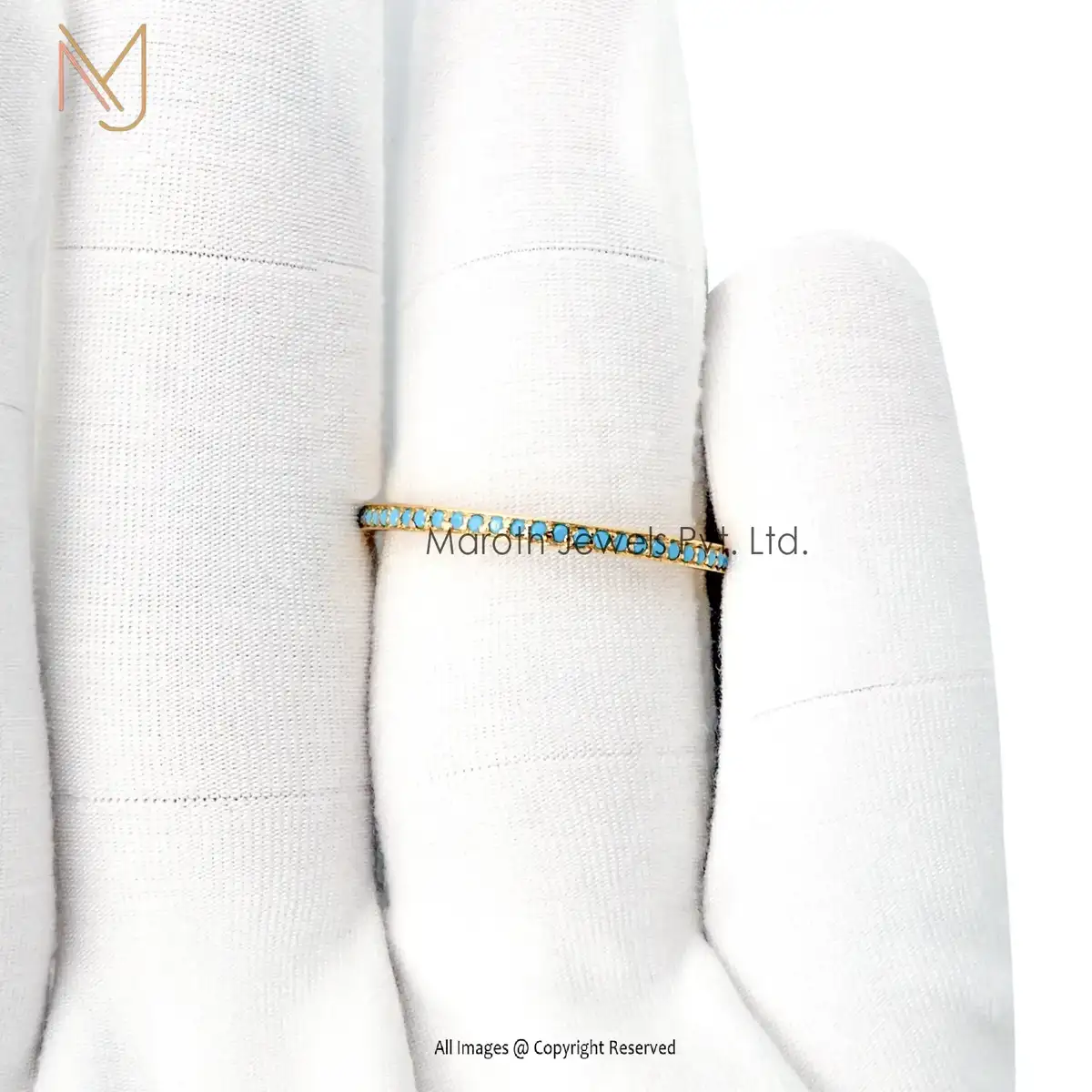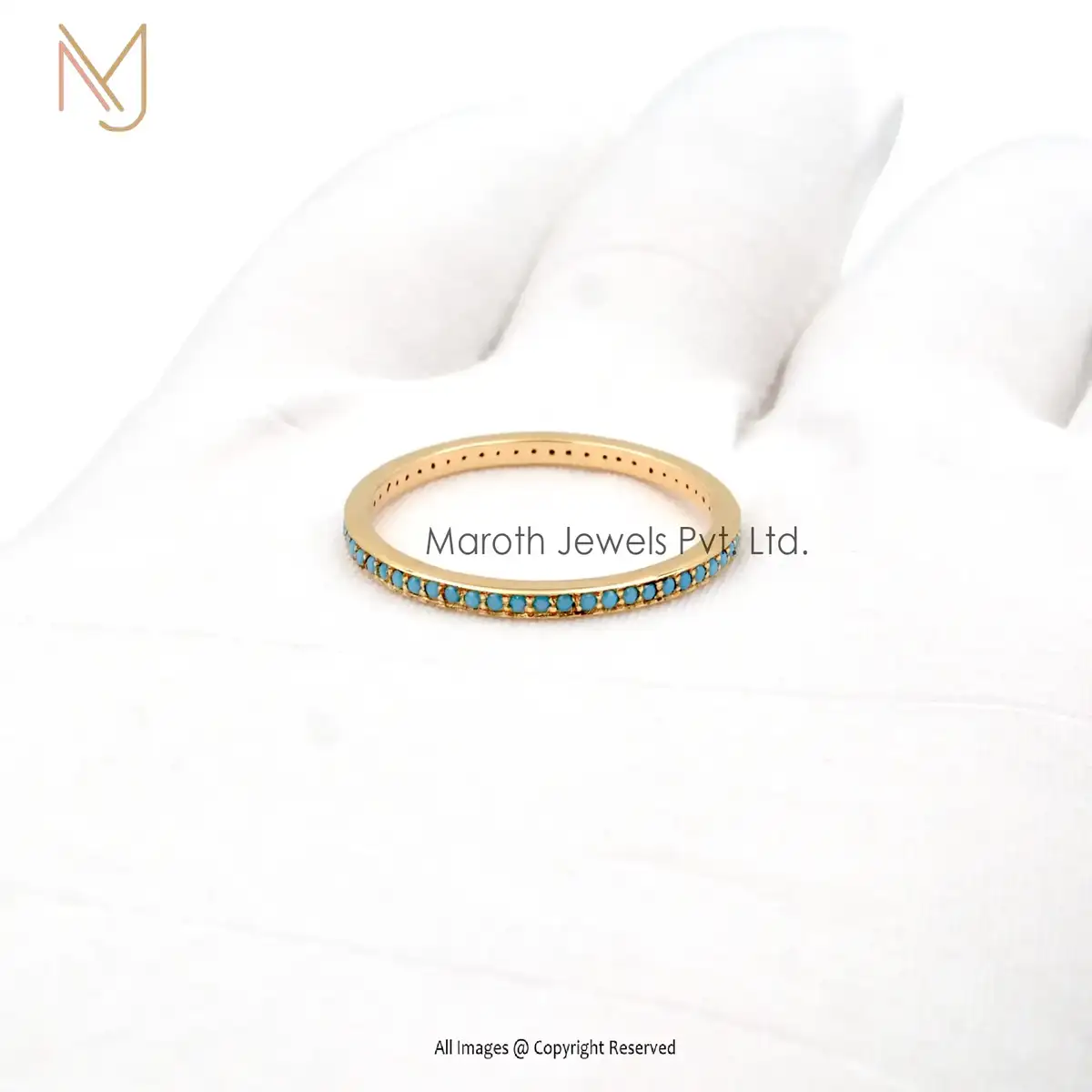 Wholesale 925 Silver Yellow Gold Plated Turquoise Band Ring Jewelry