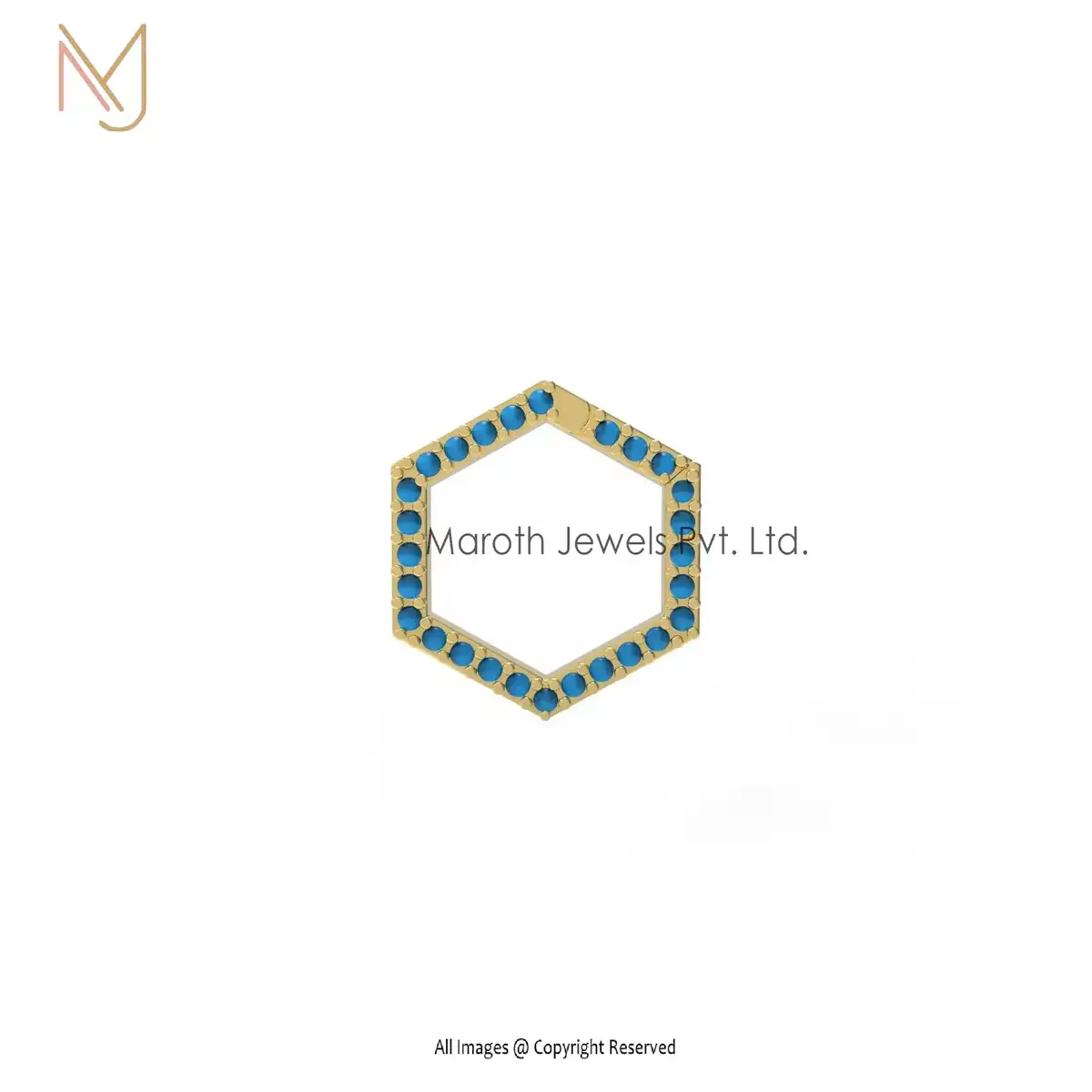 Wholesale 925 Silver Yellow Gold Plated Turquoise Gemstone Hexagon Enhancer Jewelry