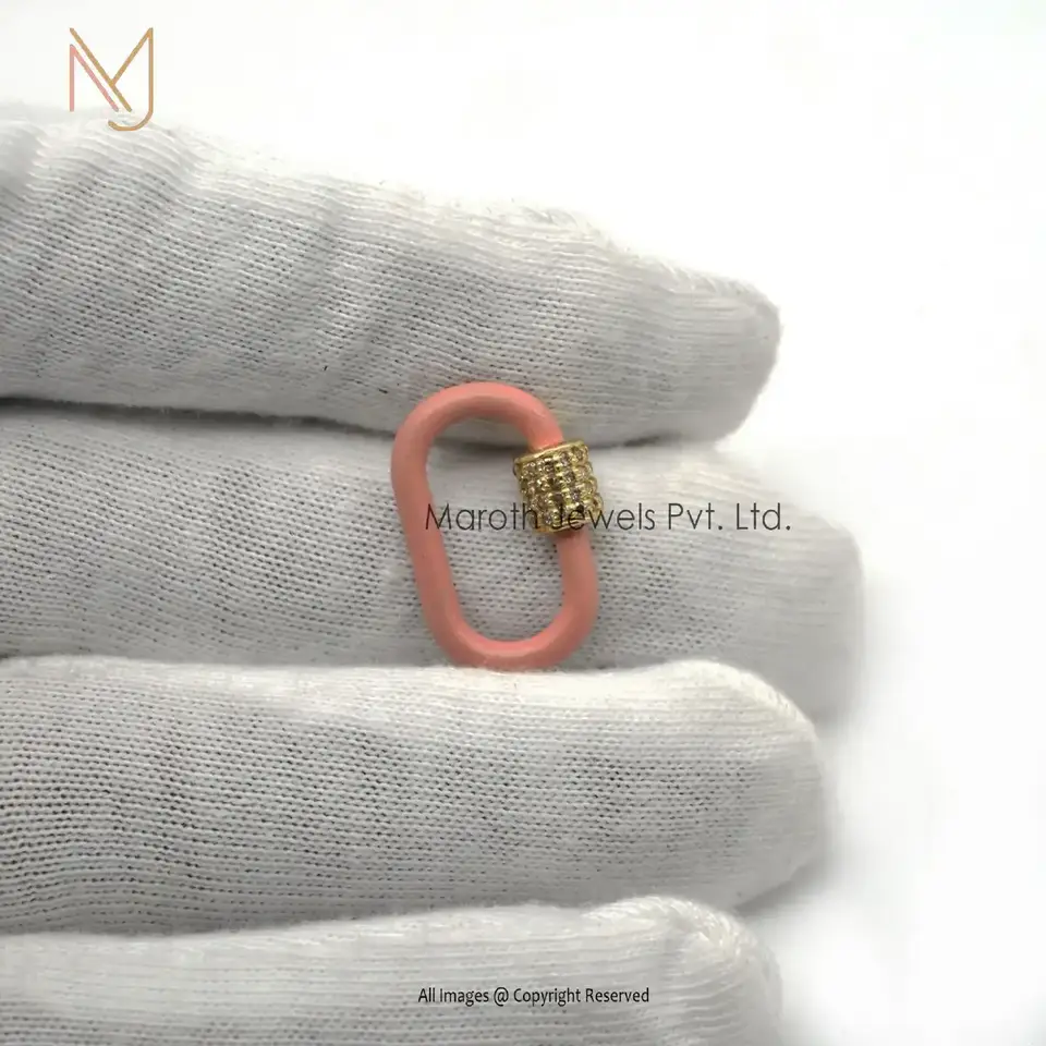 Wholesale 925 Sterling Silver Pave Diamond Pink Enamel Carabiner Lock