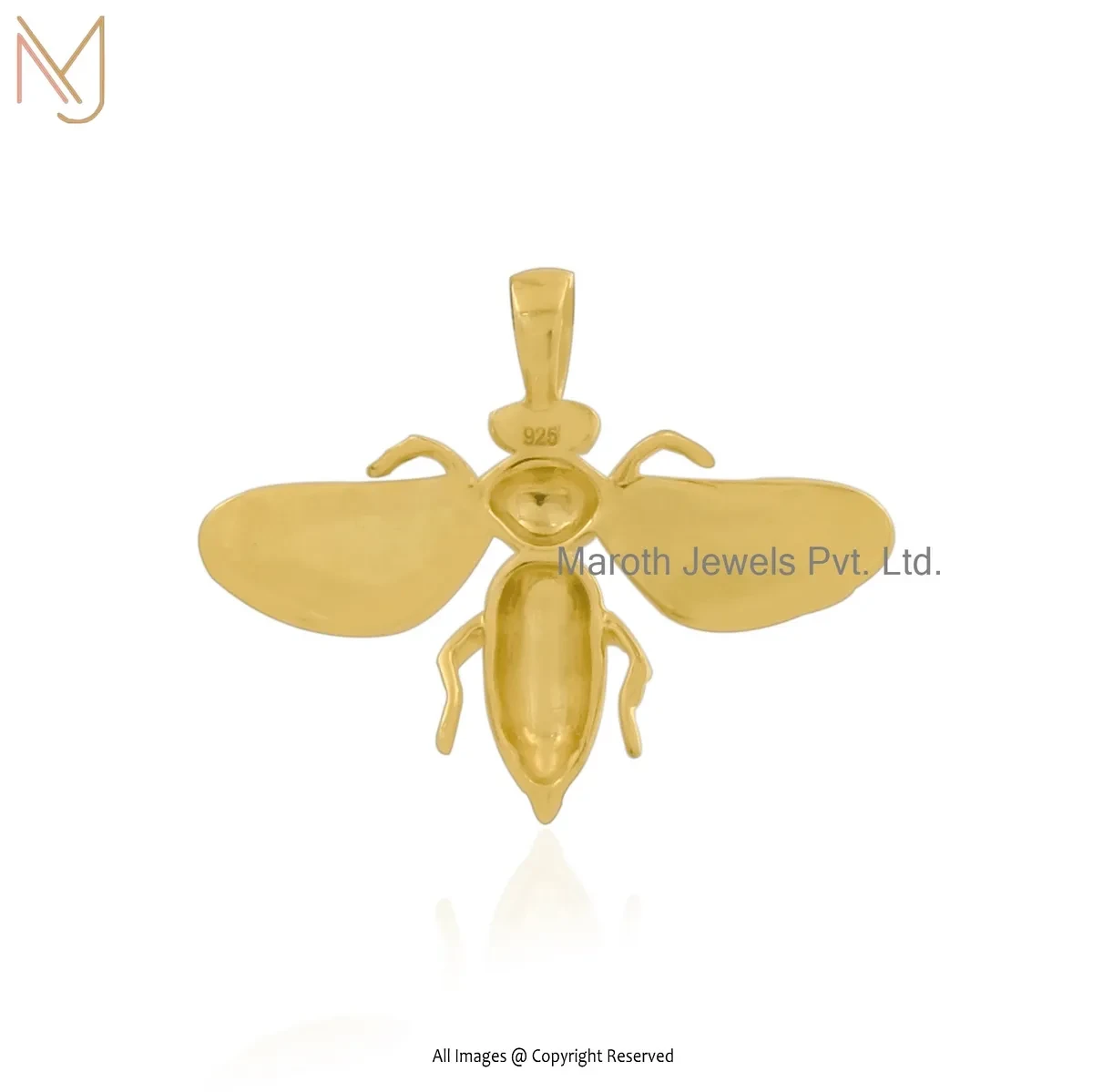 Wholesale 925 Sterling Silver Yellow Gold Plated Black Cubic Zircon Bee Charm Pendant