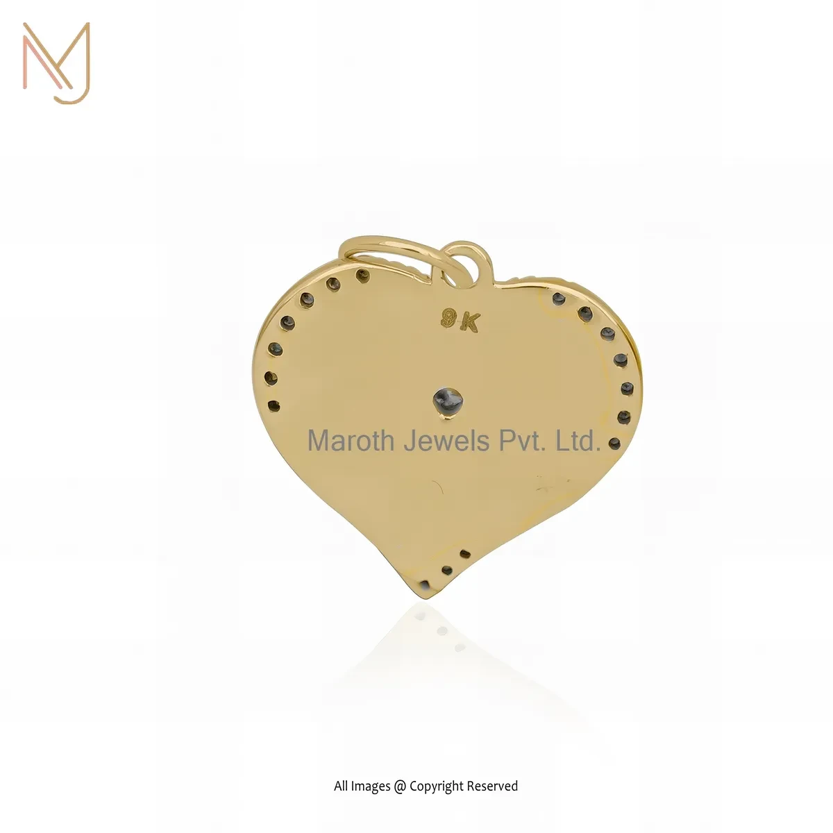 Wholesale 925 Sterling Silver Yellow Gold Plated Diamond & Cubic Zircon Fluted Heart Pendant