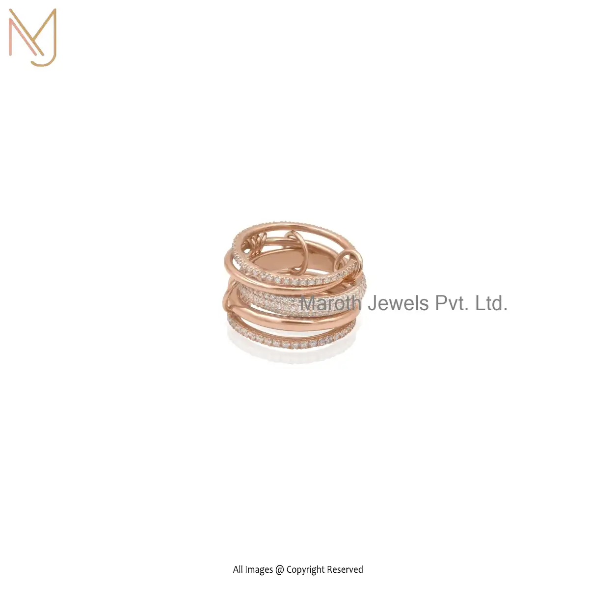 Wholesale 9K Rose Gold Cubic Zircon Connected Ring Jewelry
