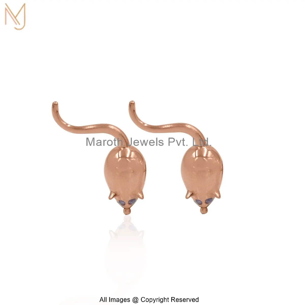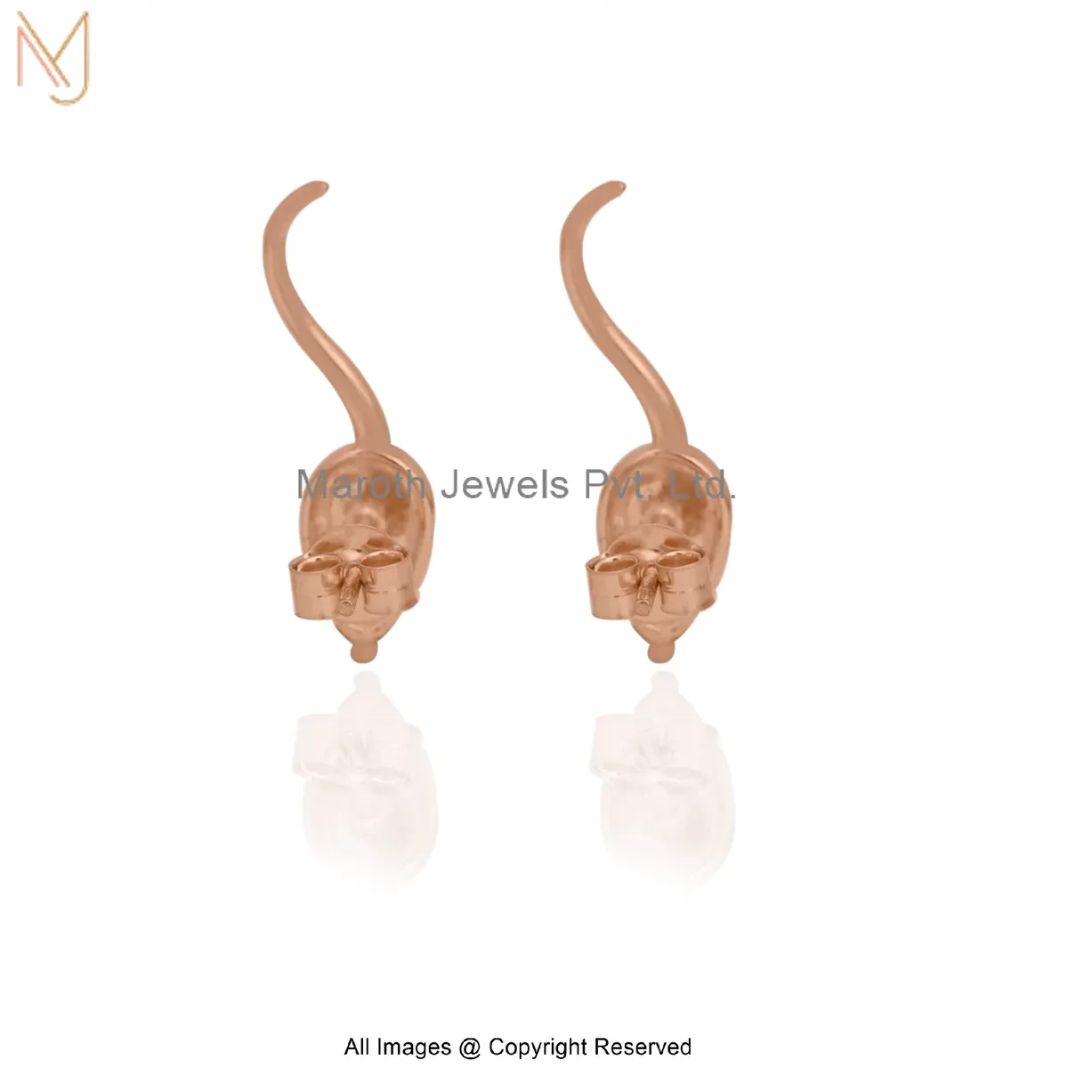 14K Rose Gold Diamond Gemstone Mouse Stud Earring Manufacturer