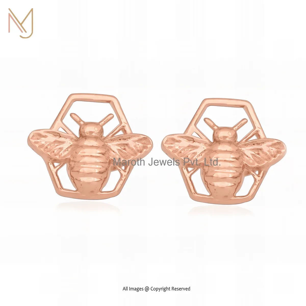 14K Rose Gold Honey Bee Stud Earring Custom Jewelry