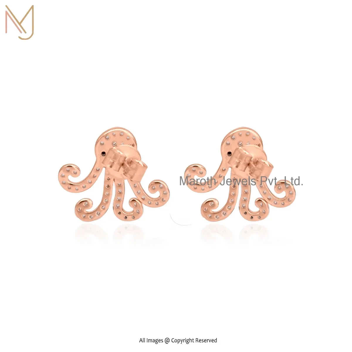 14K Rose Gold White Cubic Zircon And Black Spinel Octopus Stud Earrings USA