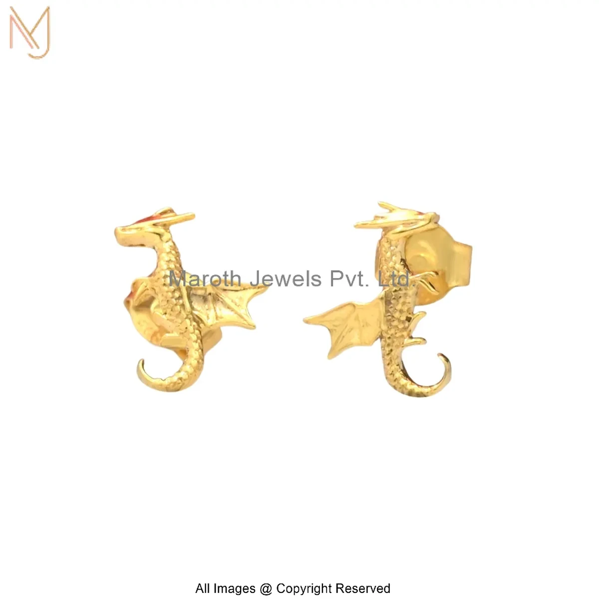 14K Solid Yellow Gold Dragon Stud Earring Custom Jewelry