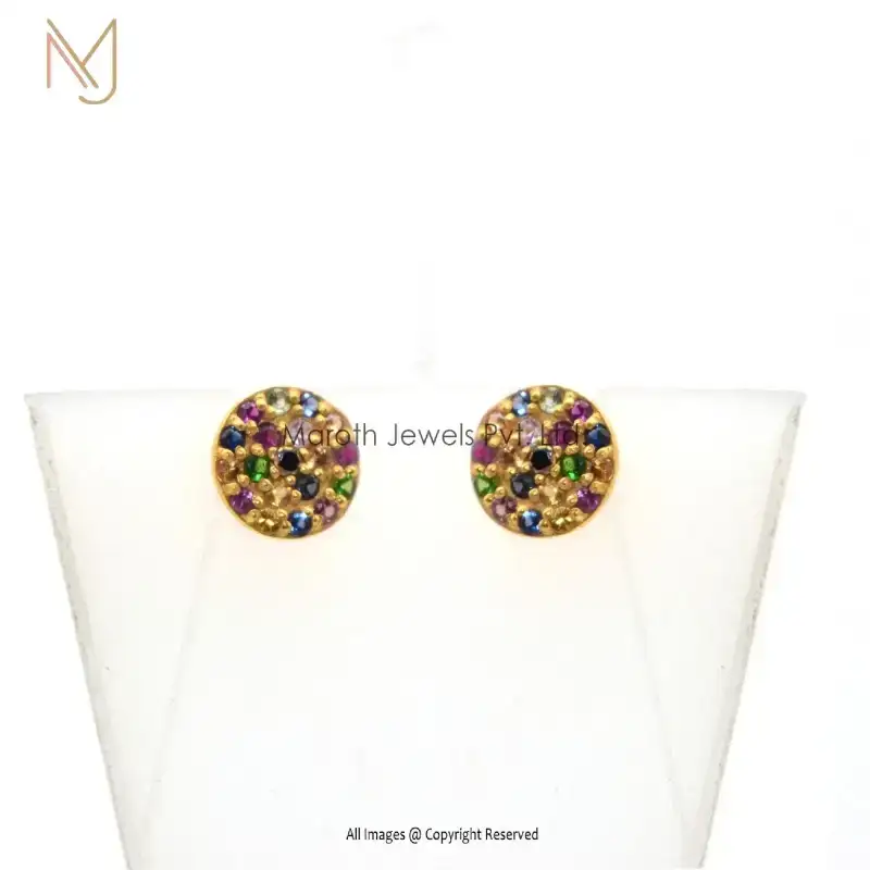 14K Solid Yellow Gold Multi Color Gemstone Stud Earring Jewelry Manufacturer