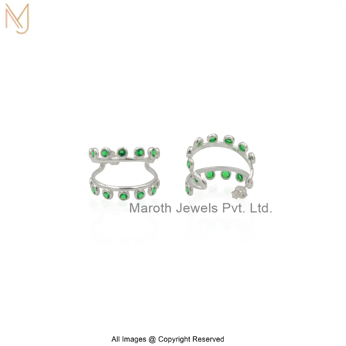 14K White Gold Diamond Green Cubic Zircon Hoop Earring Custom Jewelry
