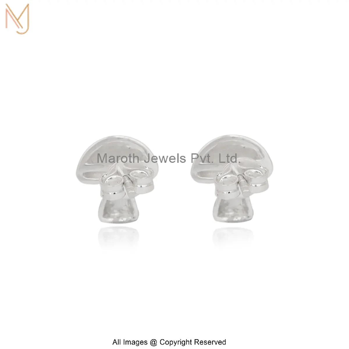 14K White Gold Diamond Mushroom Stud Earring Custom Jewelry