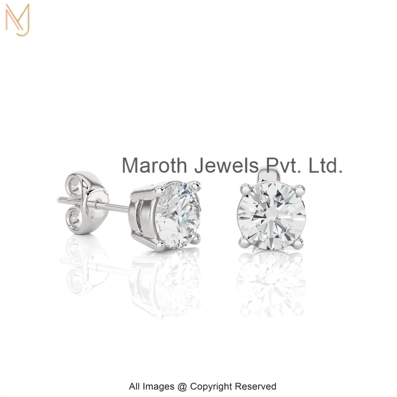 14K White Gold Diamond Round Stud Earring Custom JewelrySize : 5 MM , 6 MM , 7 MM