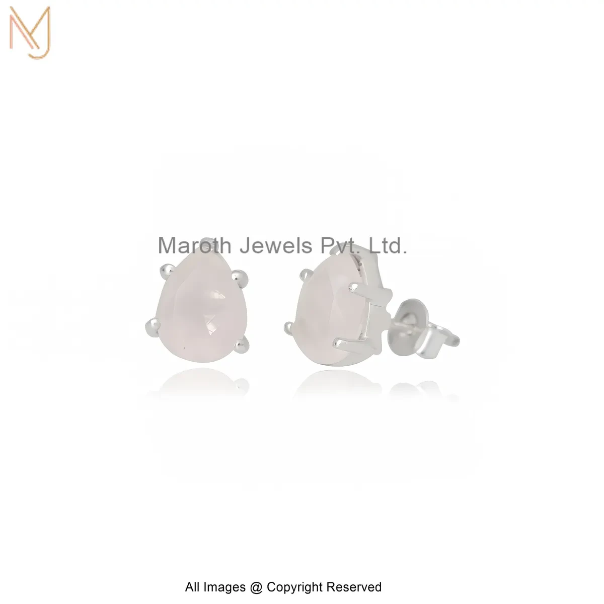 14K White Gold Elegant Pear Shape White Howlite Stud Earring Manufacturer