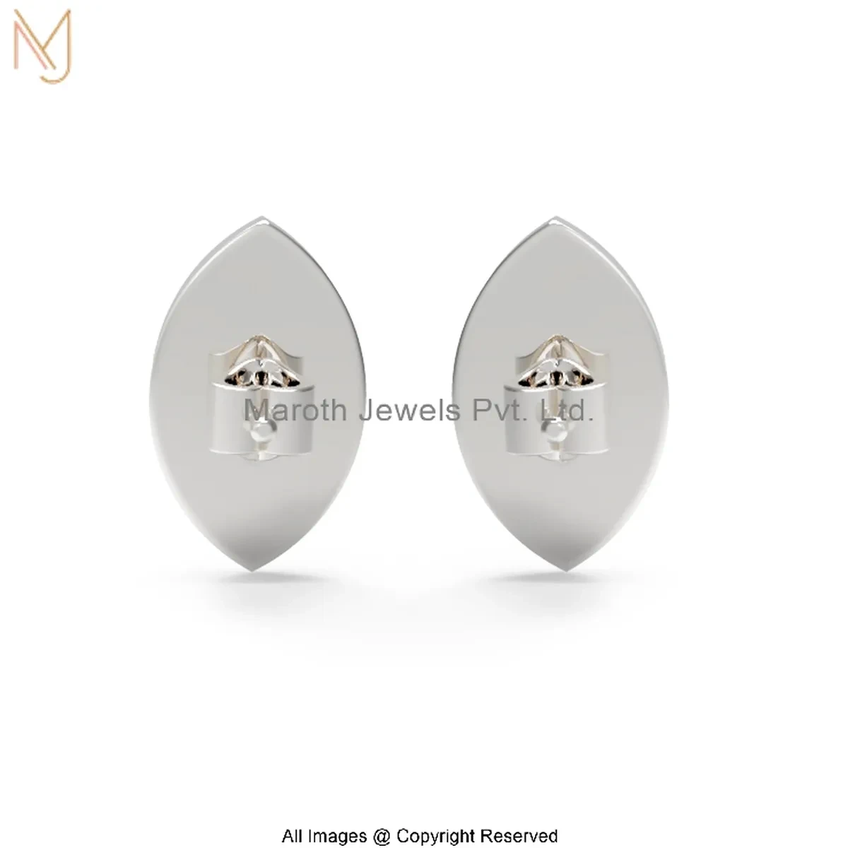 14K White Gold Marquise-Cut Diamond Stud Earring Custom Jewelry