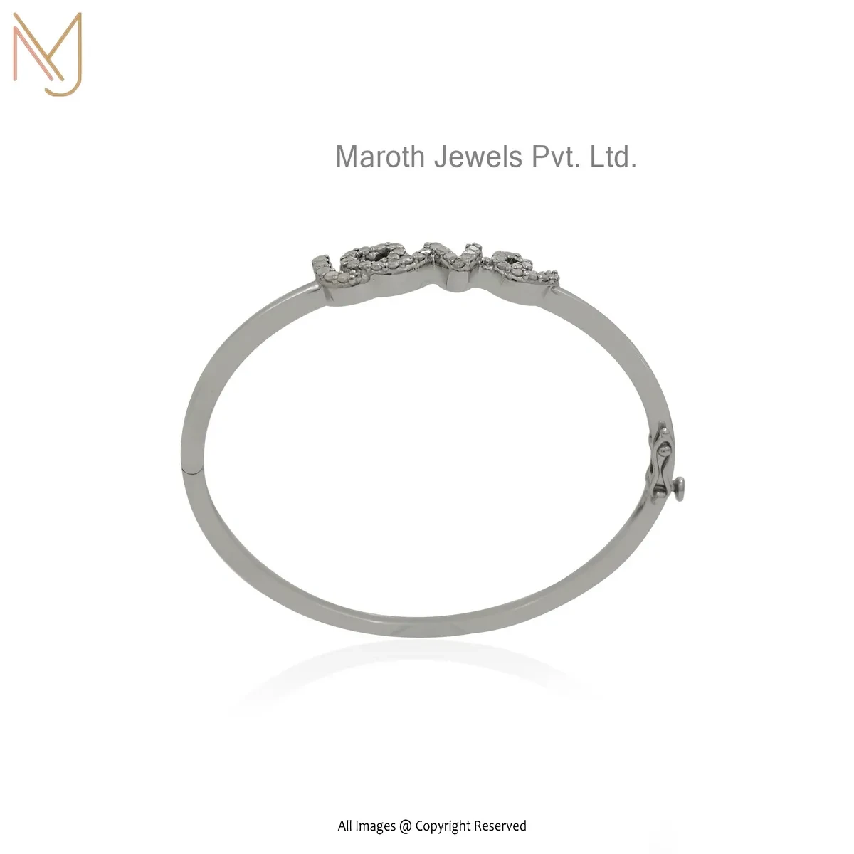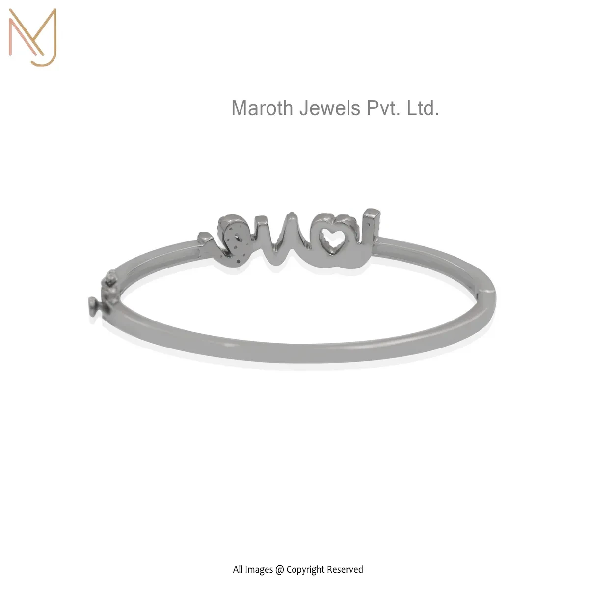 14K White Gold Pave Diamond Love Bracelet Custom Jewelry
