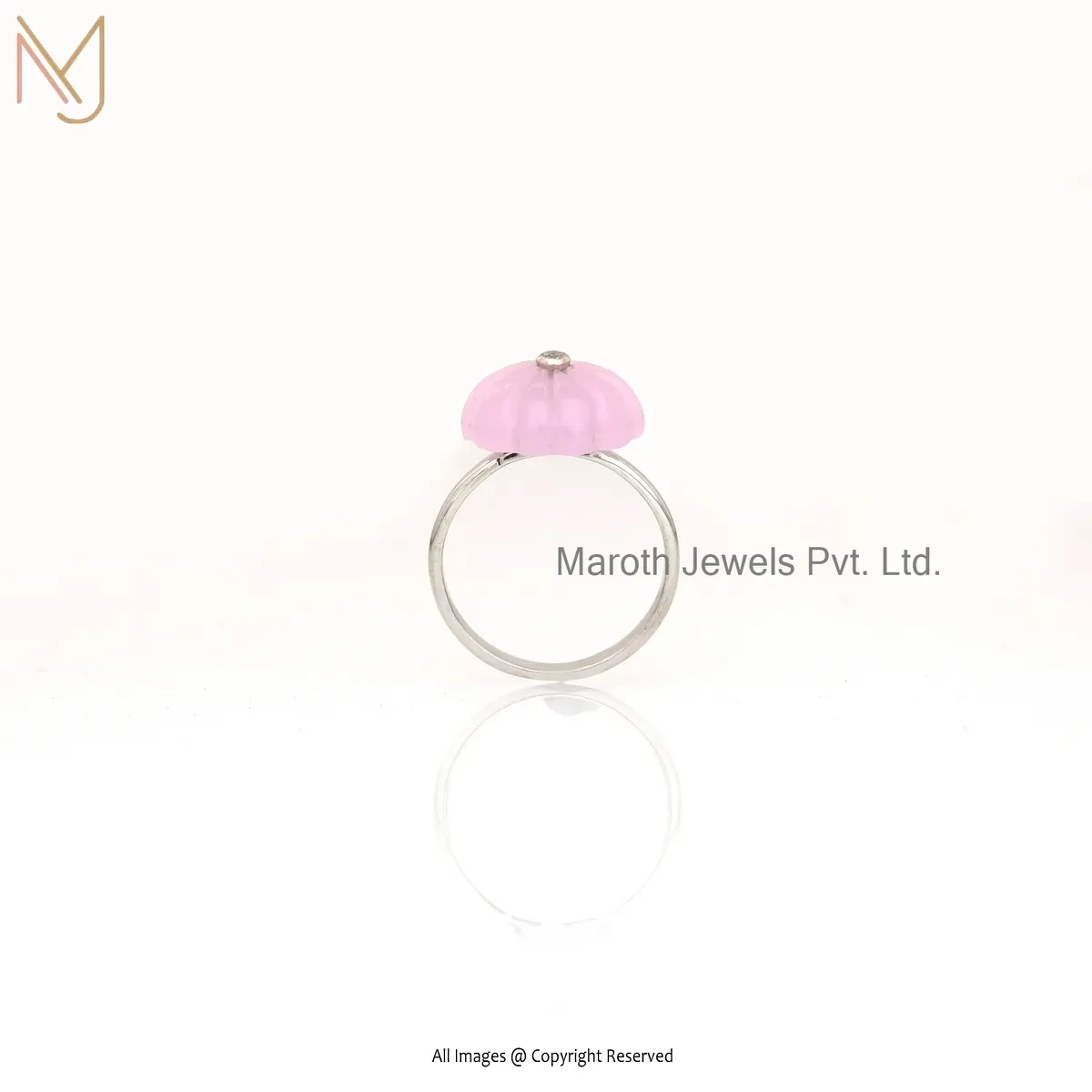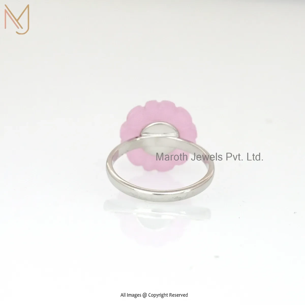 14K White Gold Rose Quartz And White Cubic Zircon Flower Ring Manufacturer